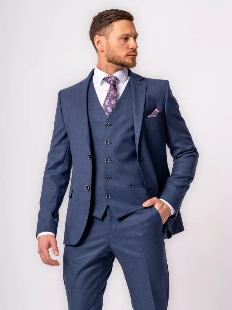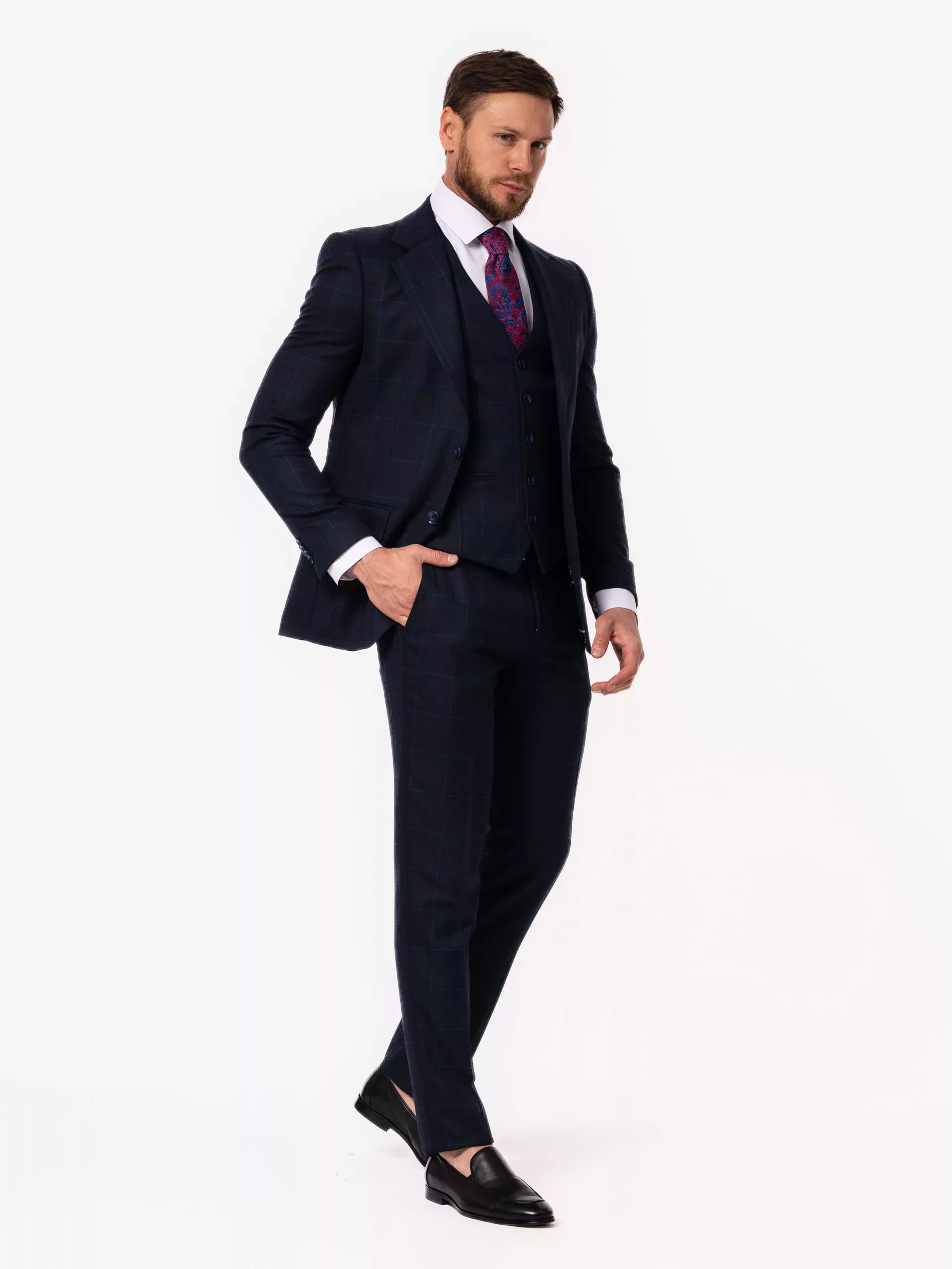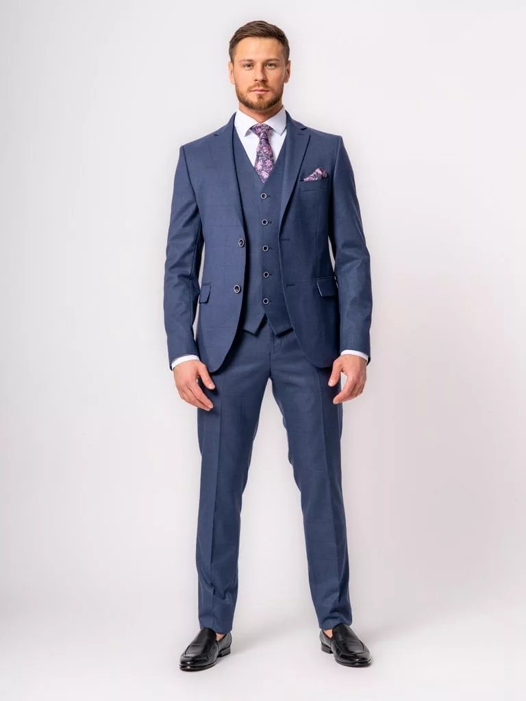 Костюм-тройка темно-синего цвета в клетку