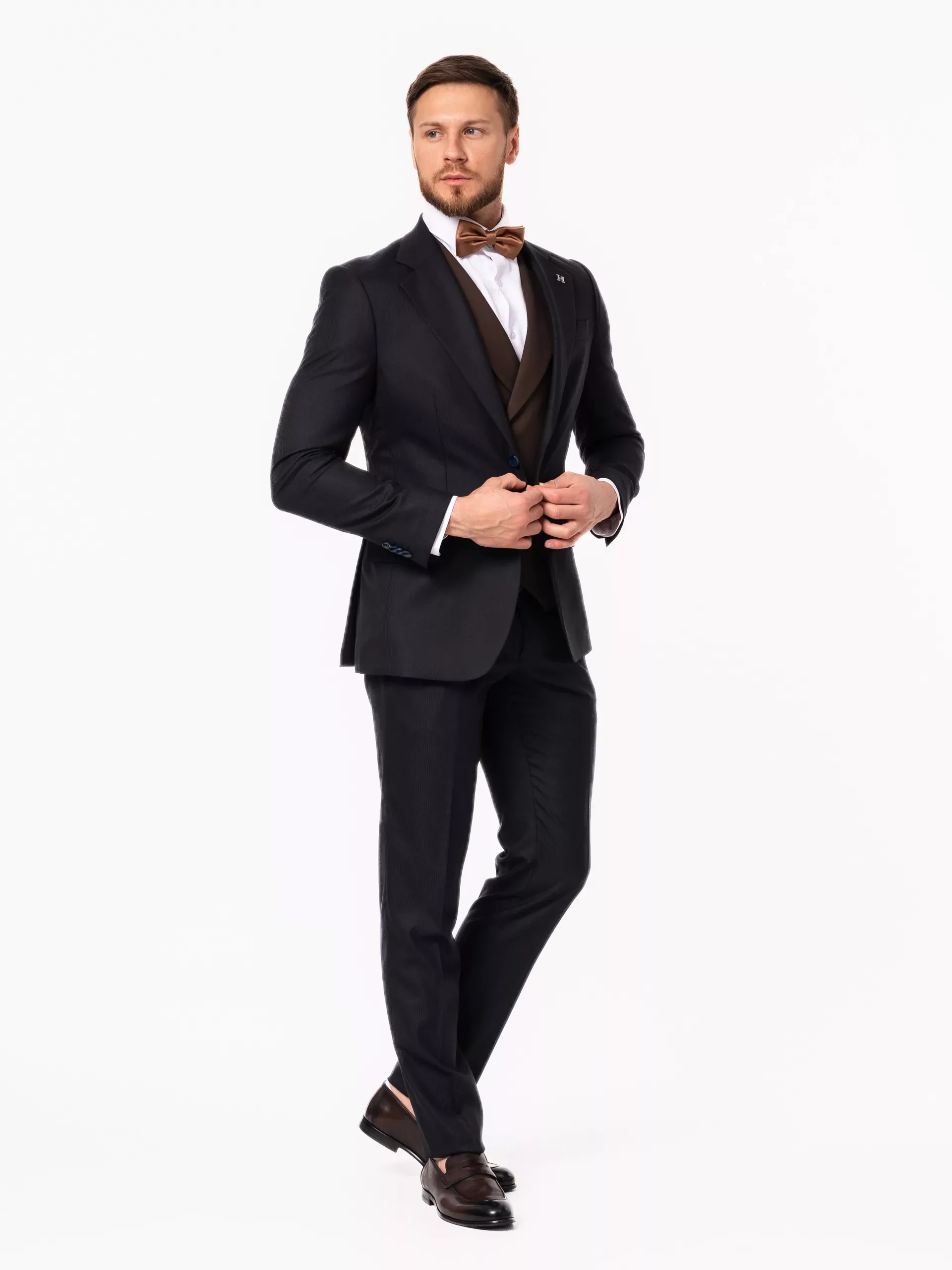Перейти к товару Костюм-тройка синего цвета с коричневым жилетом