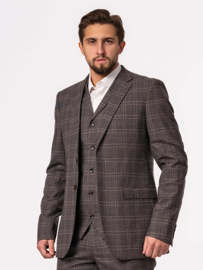 Костюм-тройка в клетку на высокий рост