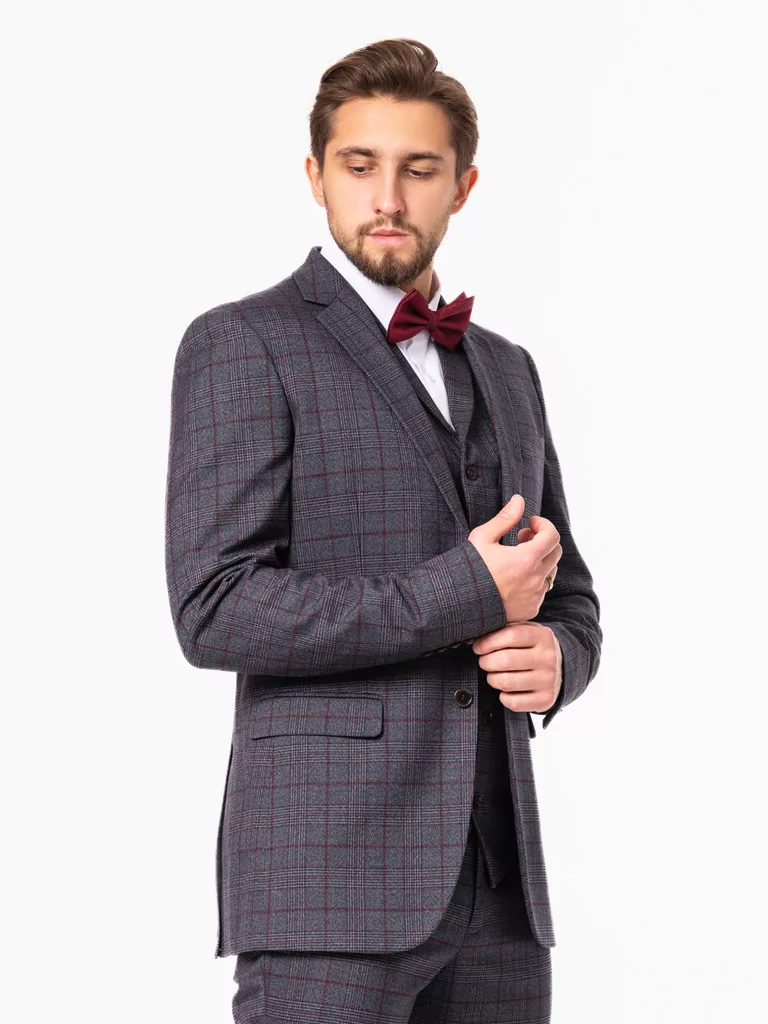 Костюм-тройка серого цвета в клетку на высокий рост