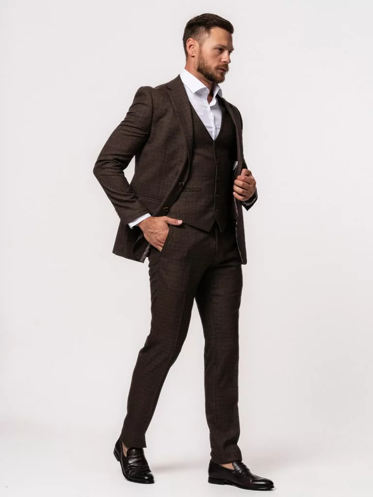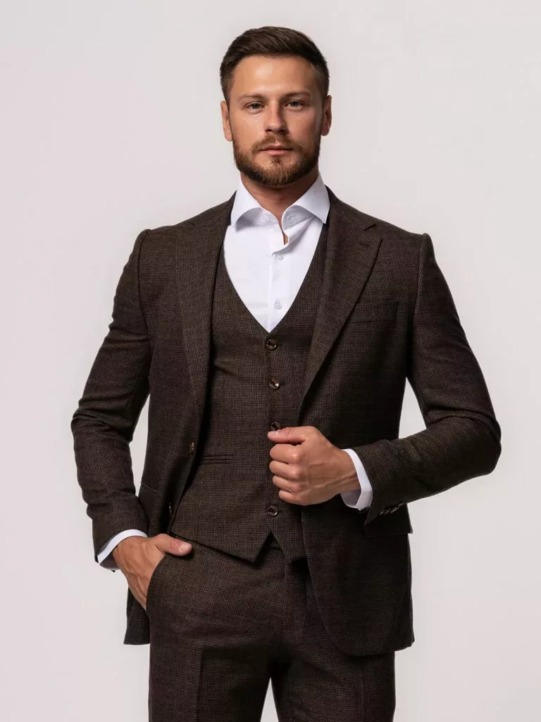 Перейти к товару Костюм-тройка коричневый цвет текстурная ткань
