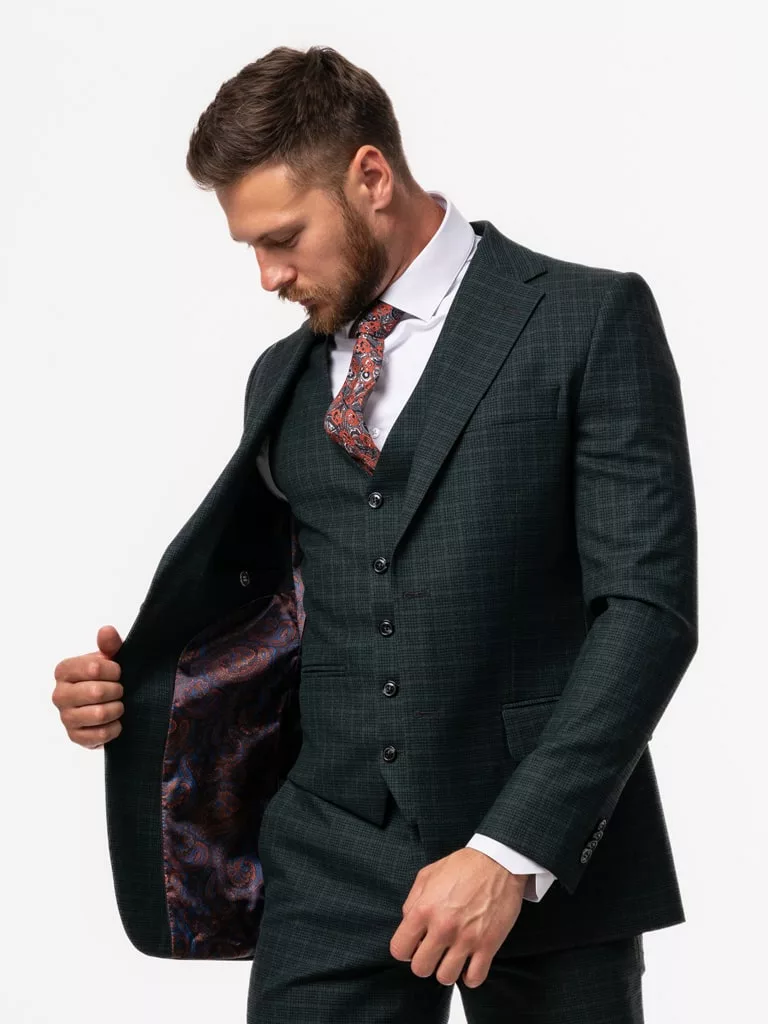 Костюм-тройка темно-зеленого цвета в мелкую клетку