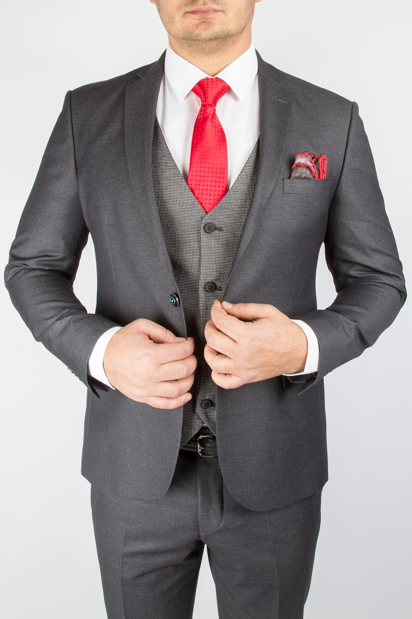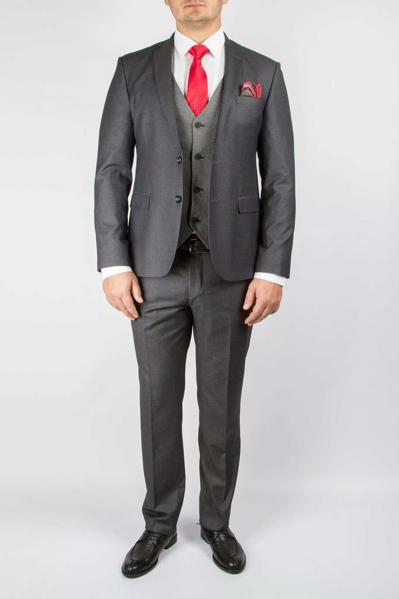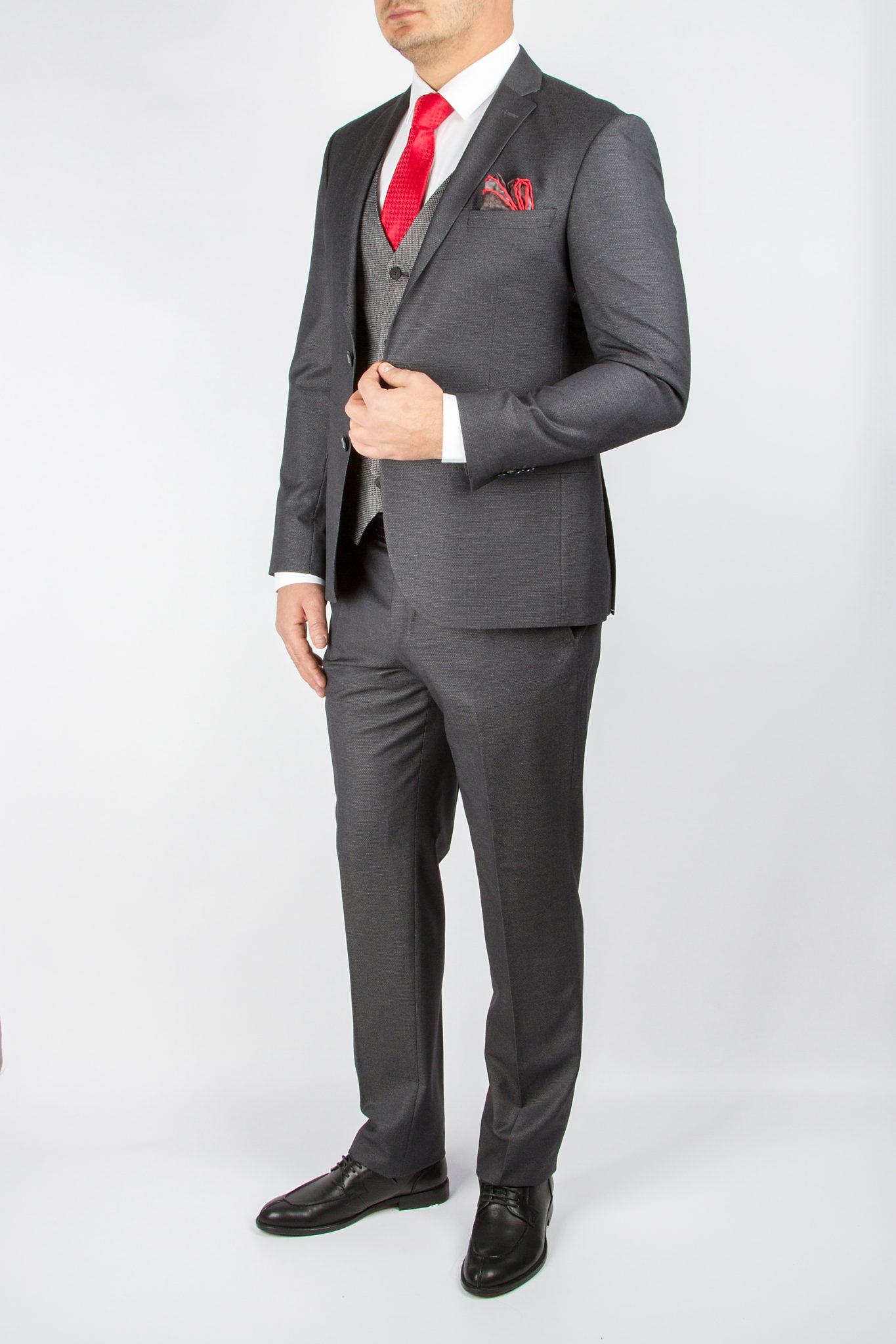 Костюм-тройка серого цвета из фактурной ткани