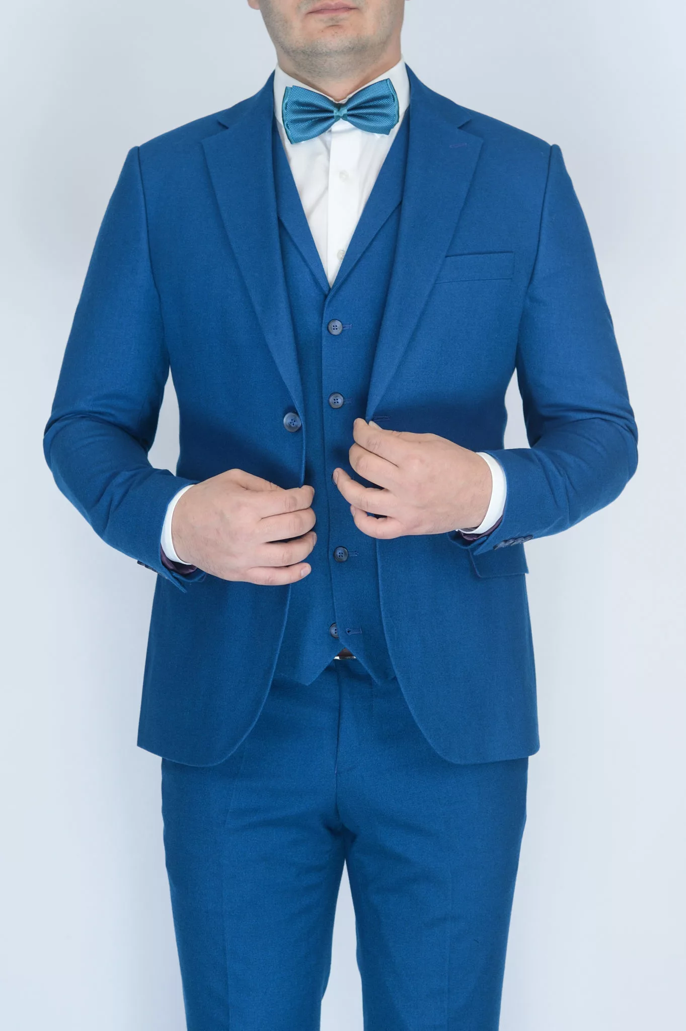 Костюм-тройка синего цвета, облегченная модель