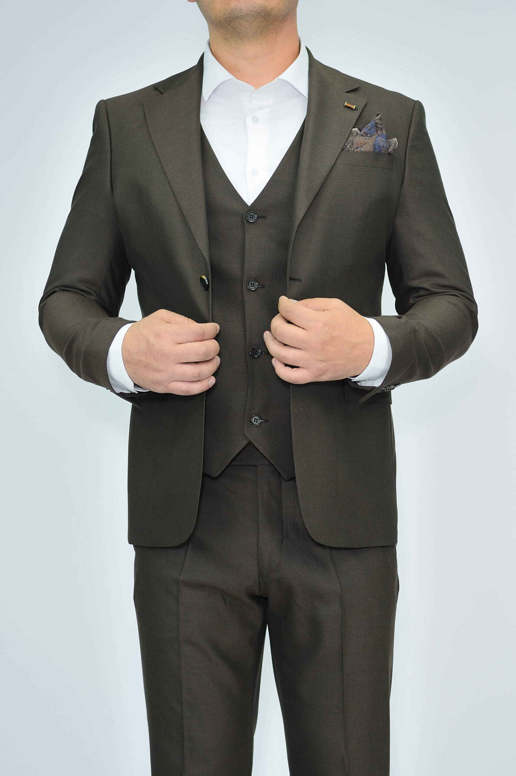 Перейти к товару Костюм-тройка шоколадного цвета текстурная ткань