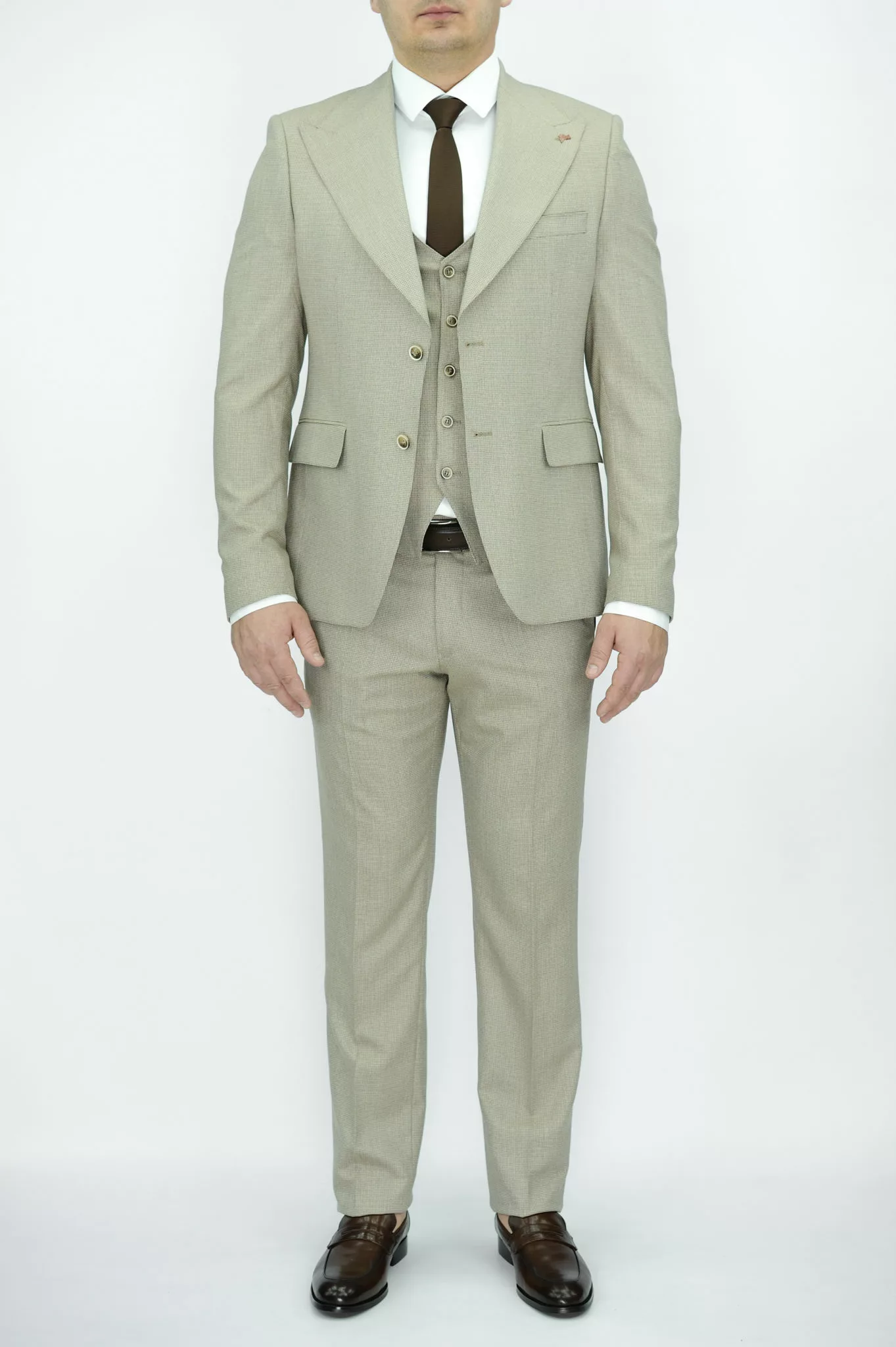 Костюм-тройка песочного цвета с шоколадным жилетом