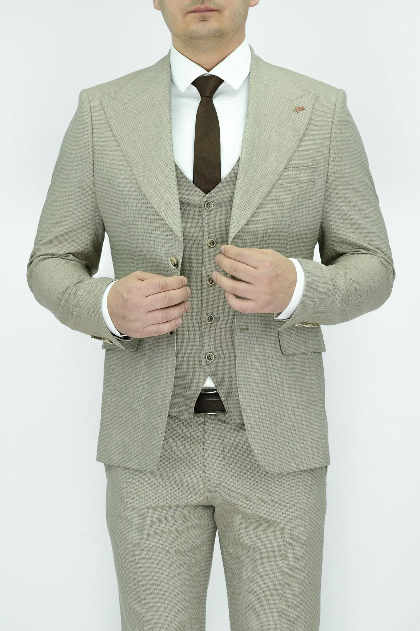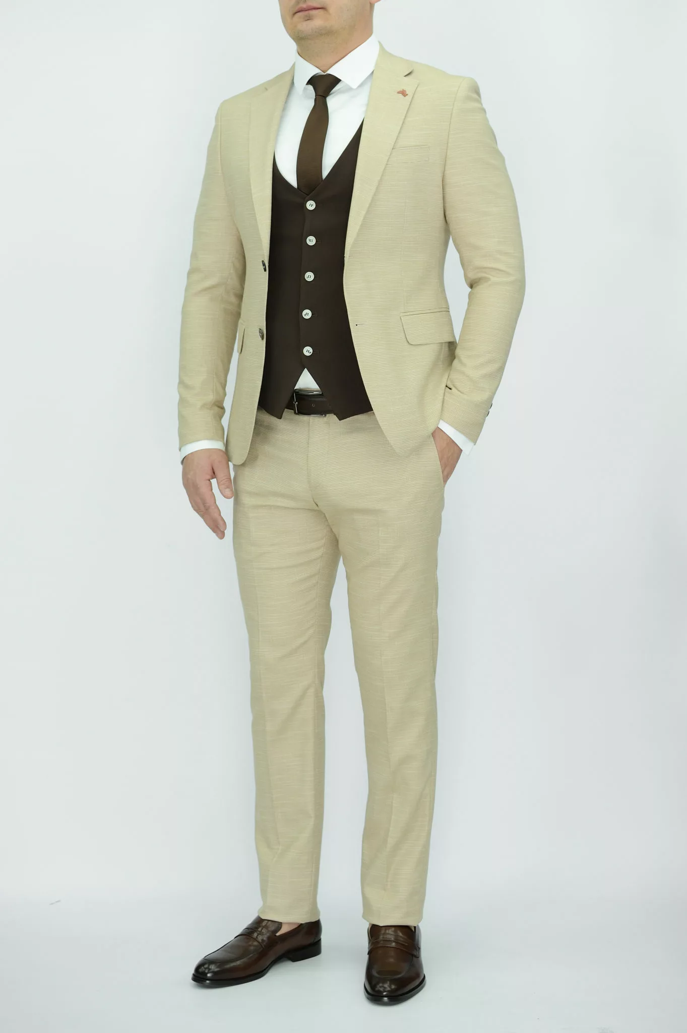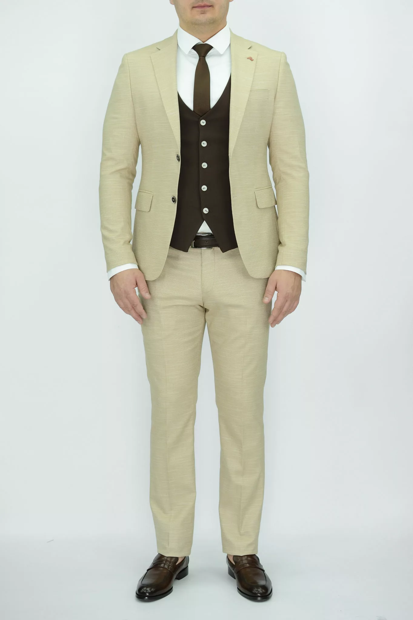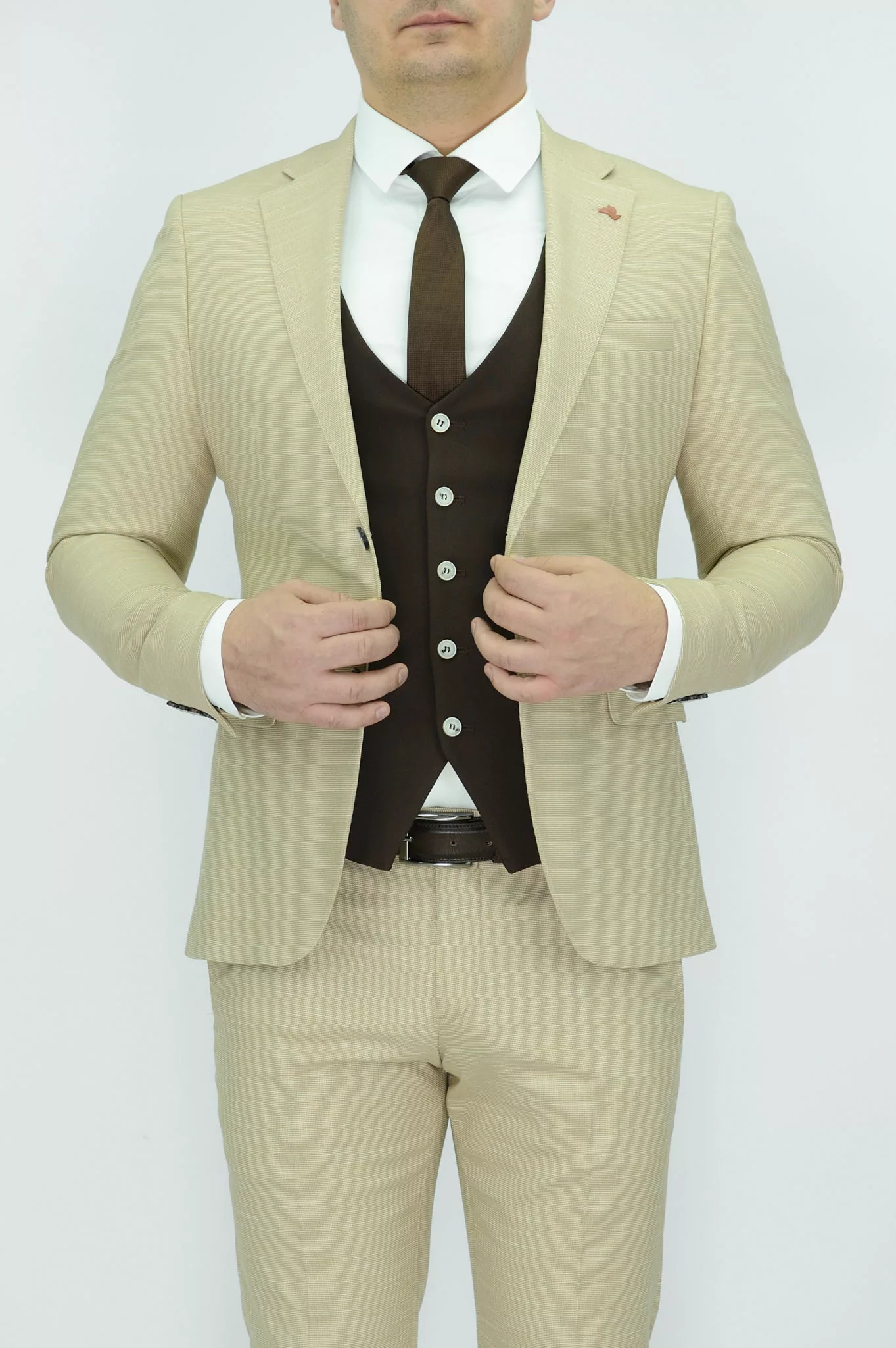 Перейти к товару Костюм-тройка песочного цвета с шоколадным жилетом