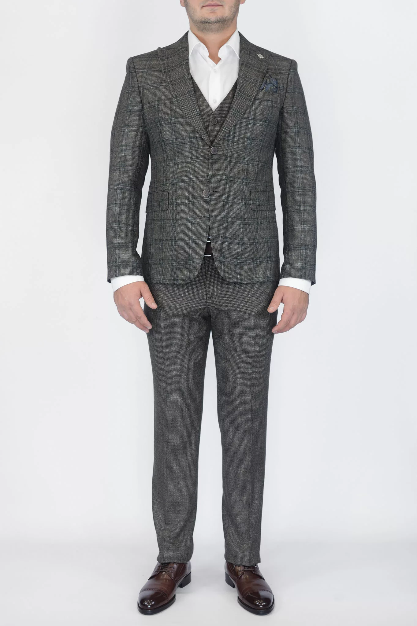 Перейти к товару Костюм-тройка песочного цвета с зеленой клеткой