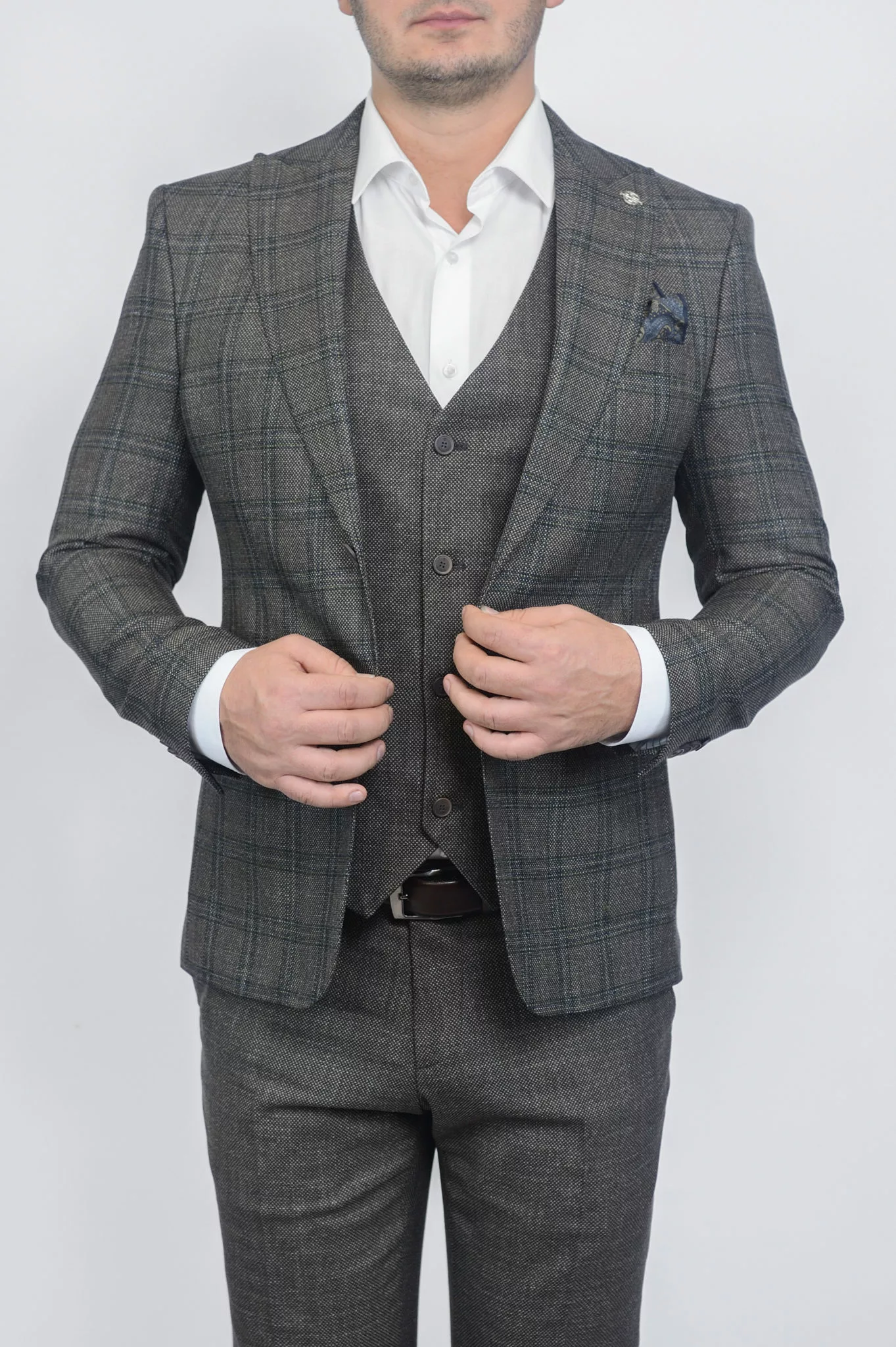 Перейти к товару Костюм-тройка с клетчатым зеленым пиджаком