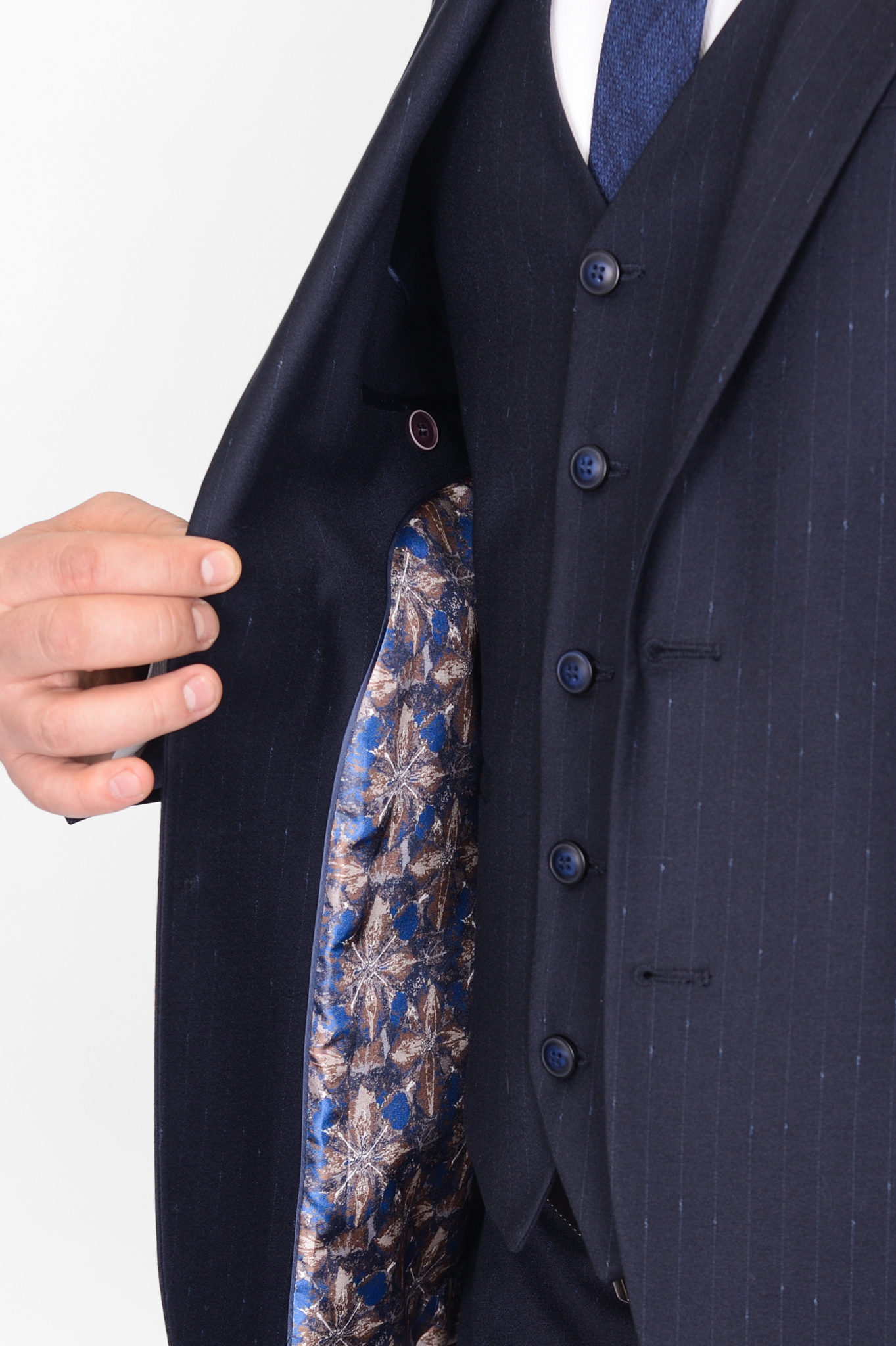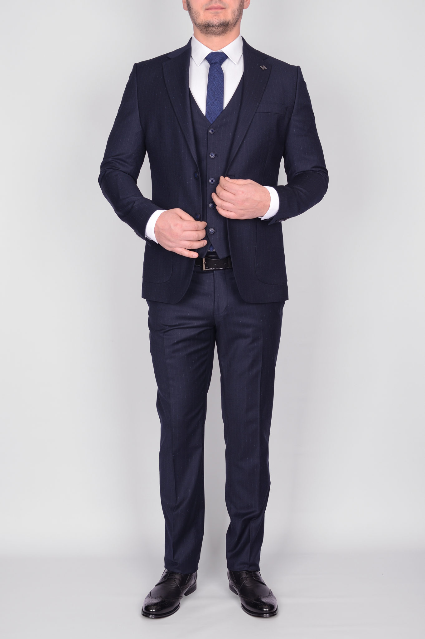 Костюм-тройка темно-синего цвета в полосу