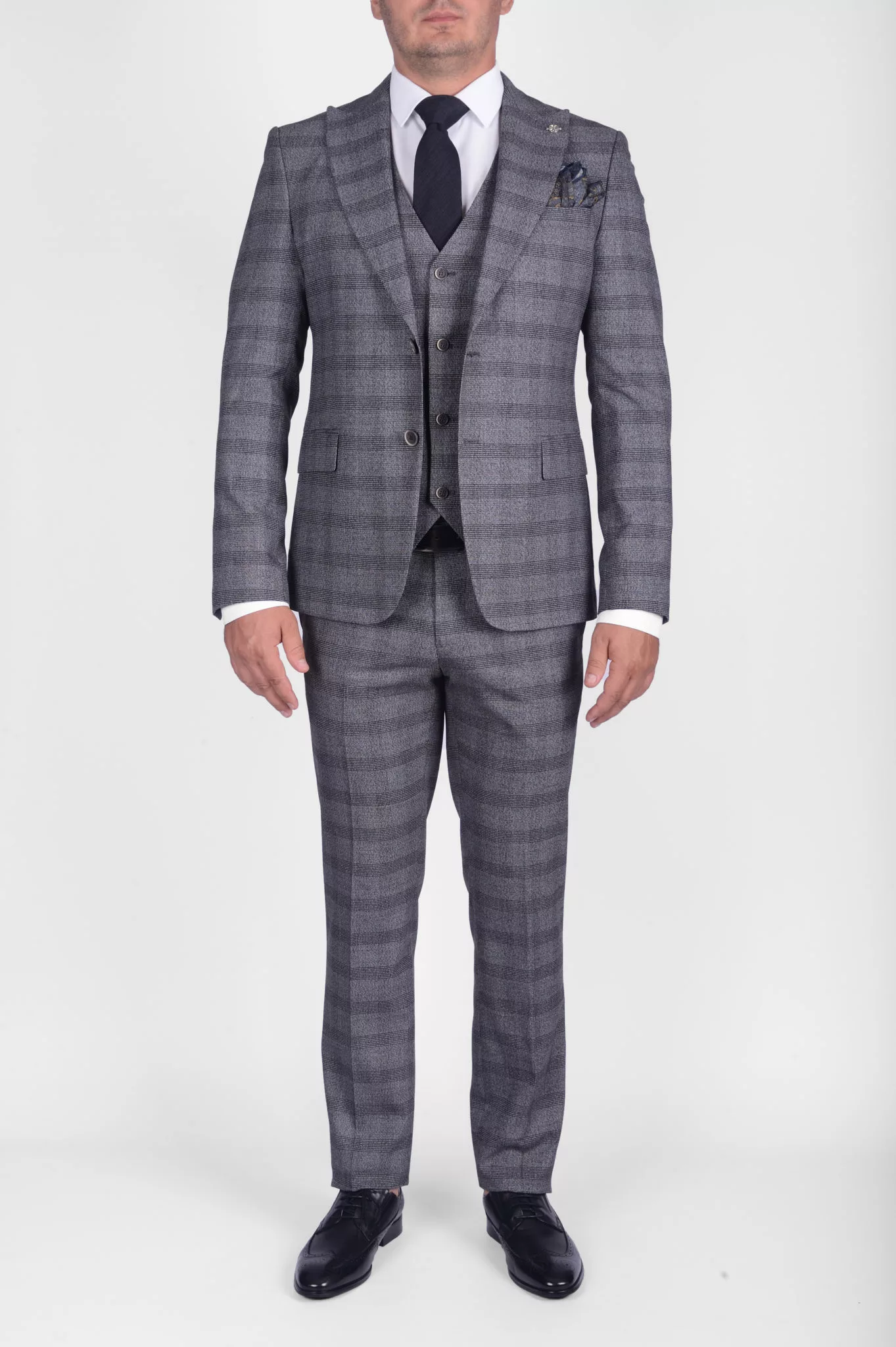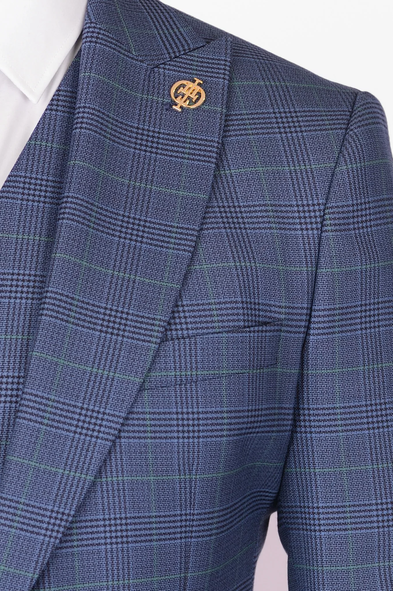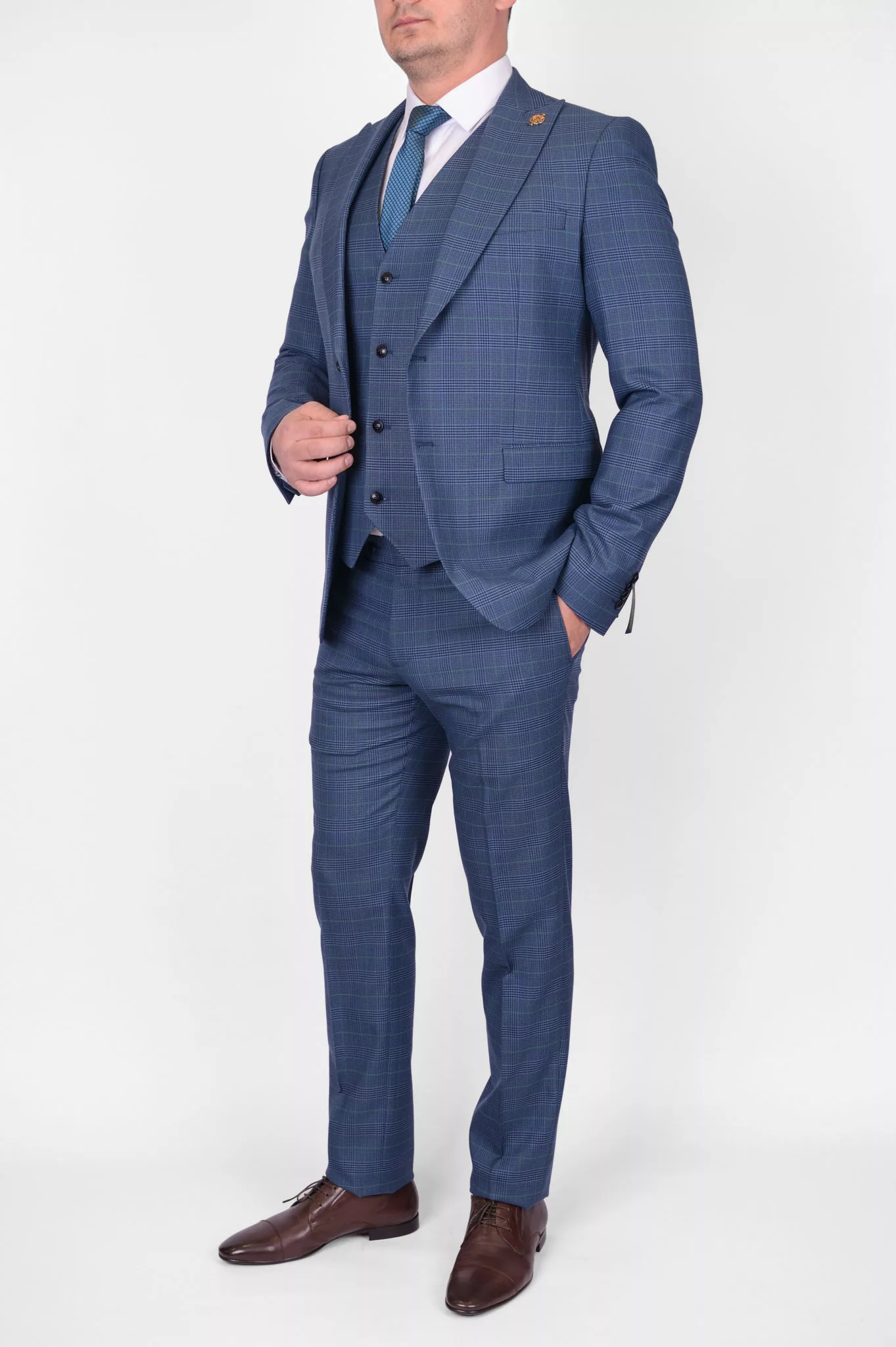 Перейти к товару Костюм-тройка с синим клетчатым пиджаком