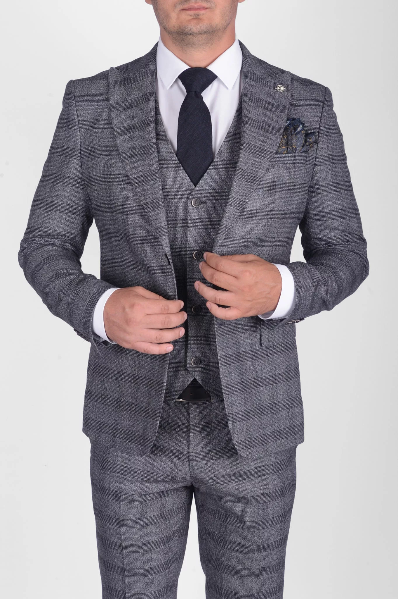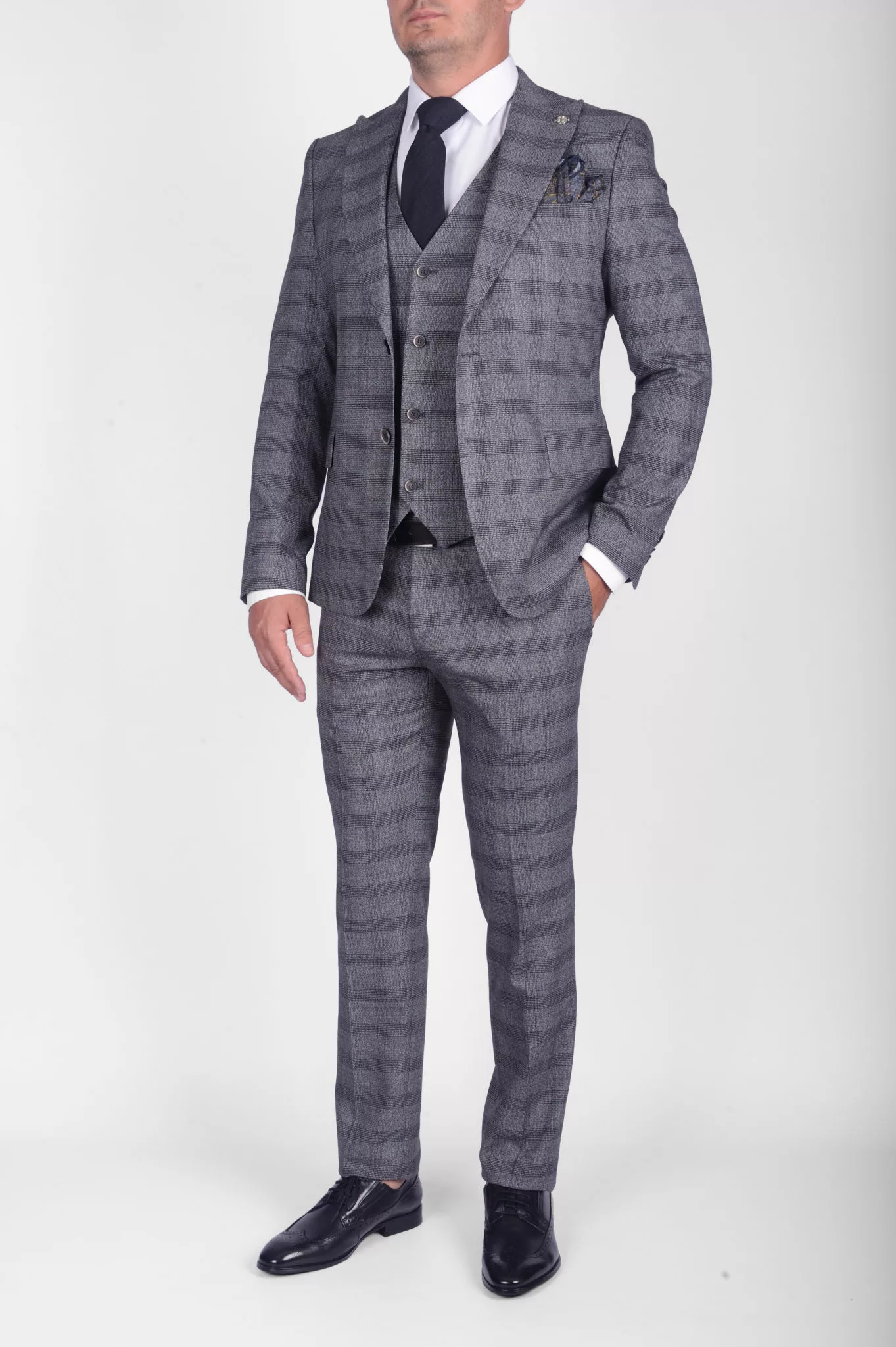Костюм-тройка с синим клетчатым пиджаком
