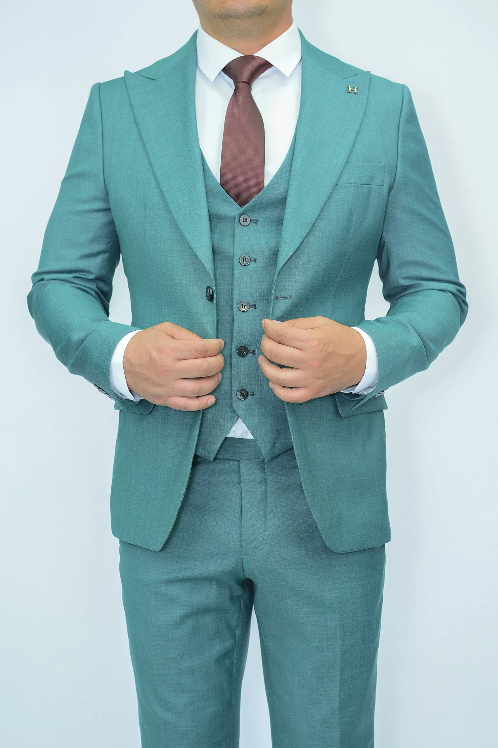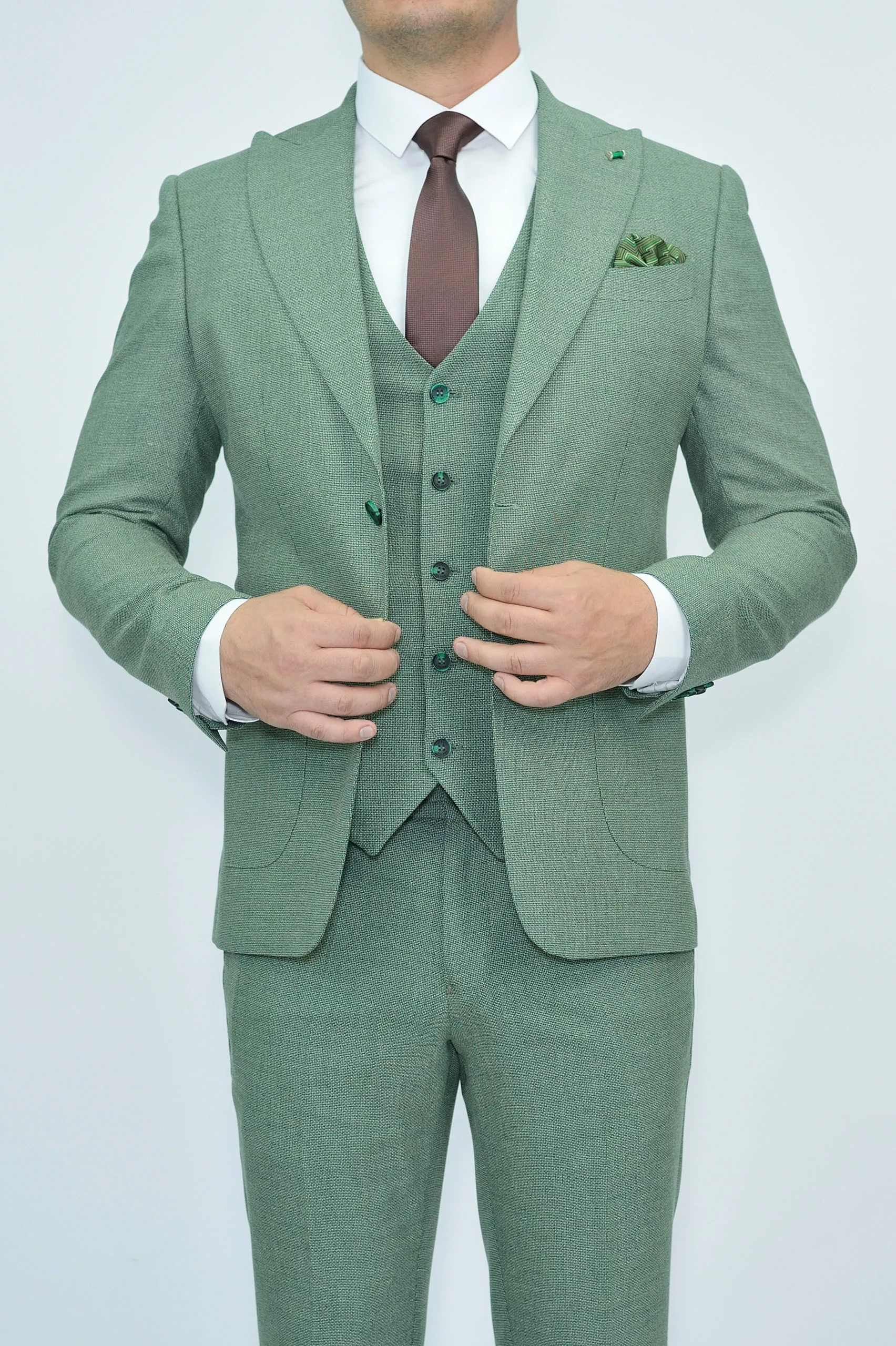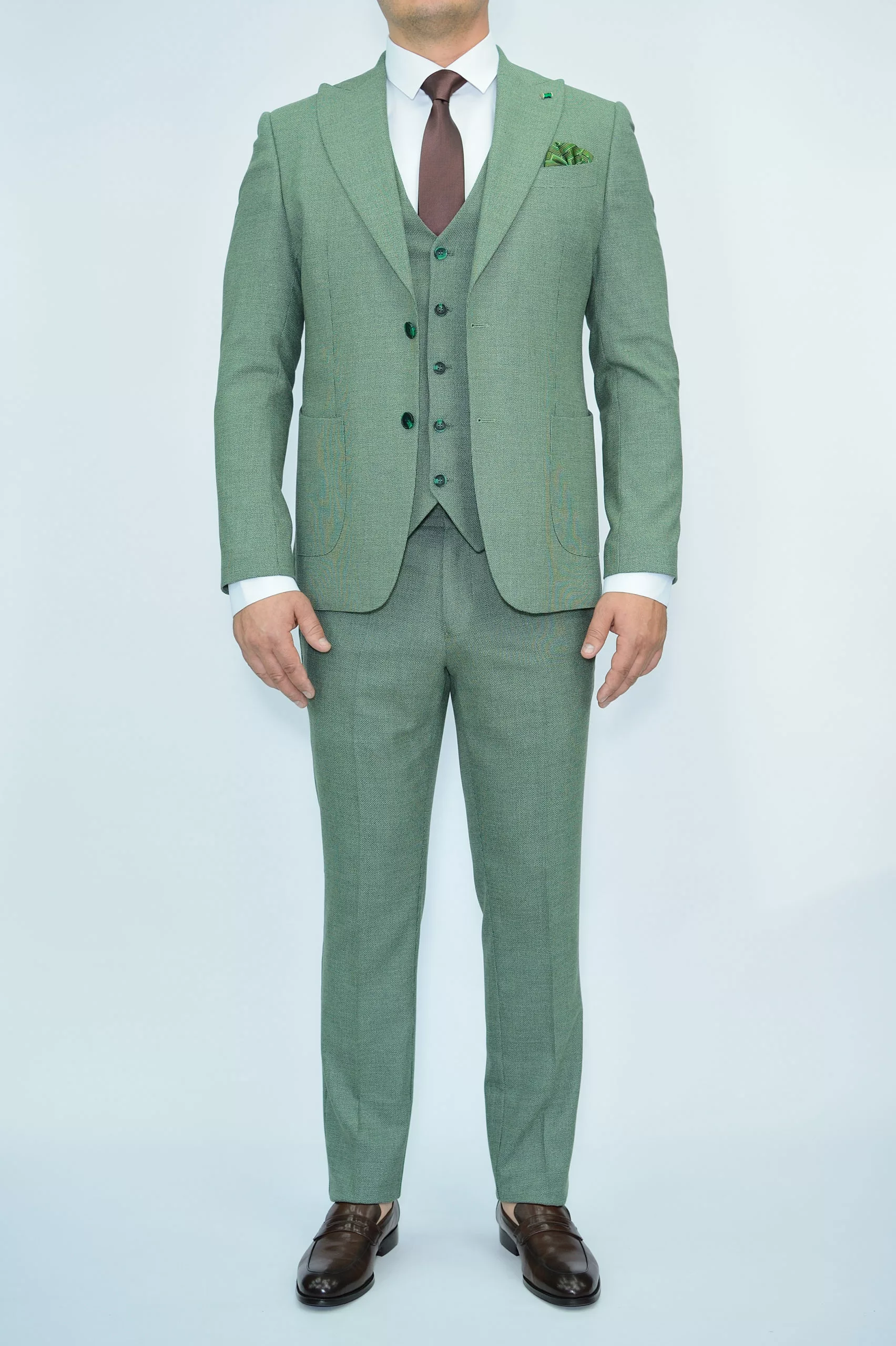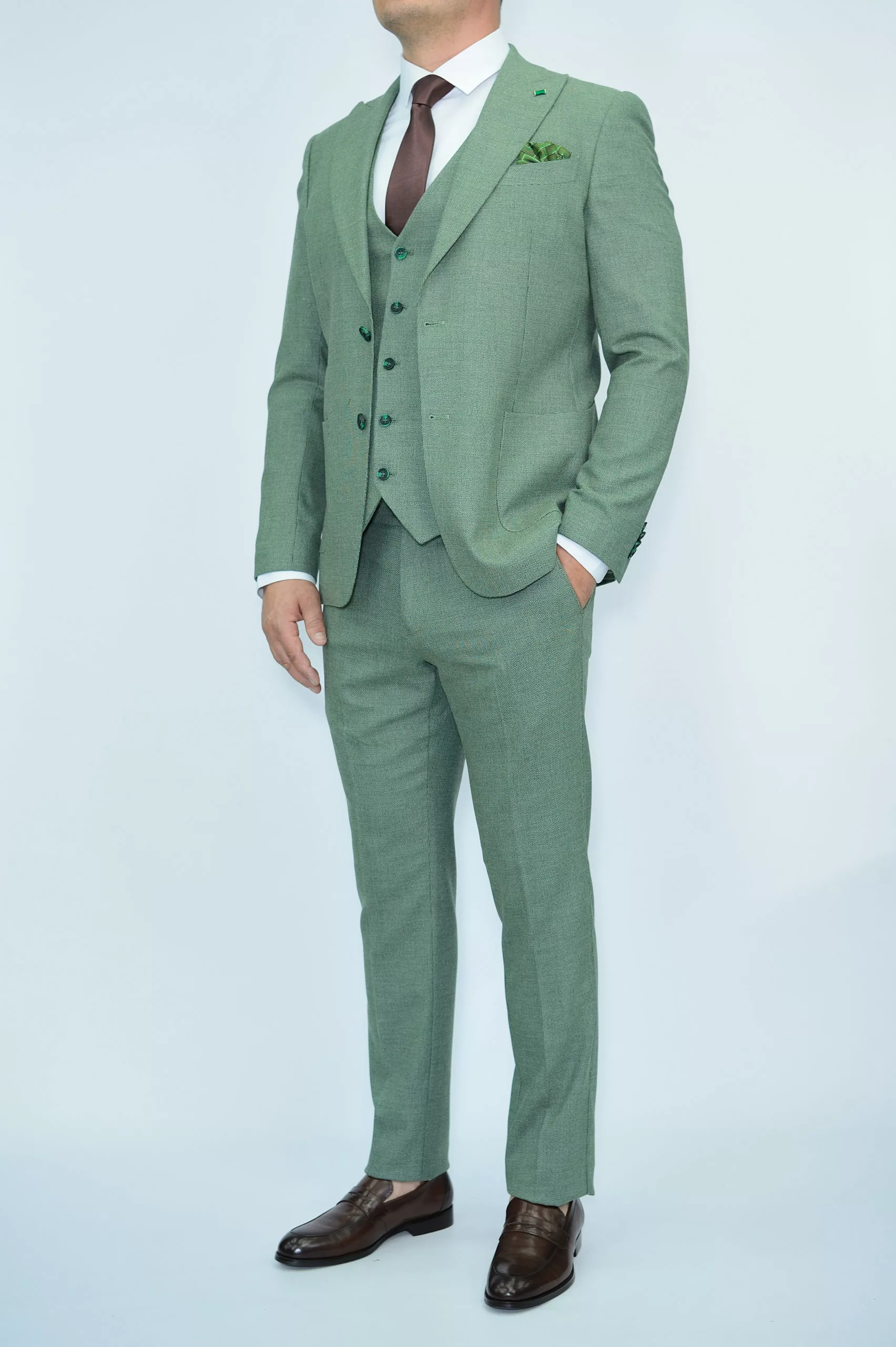 Костюм-тройка светло-зеленый текстурная ткань