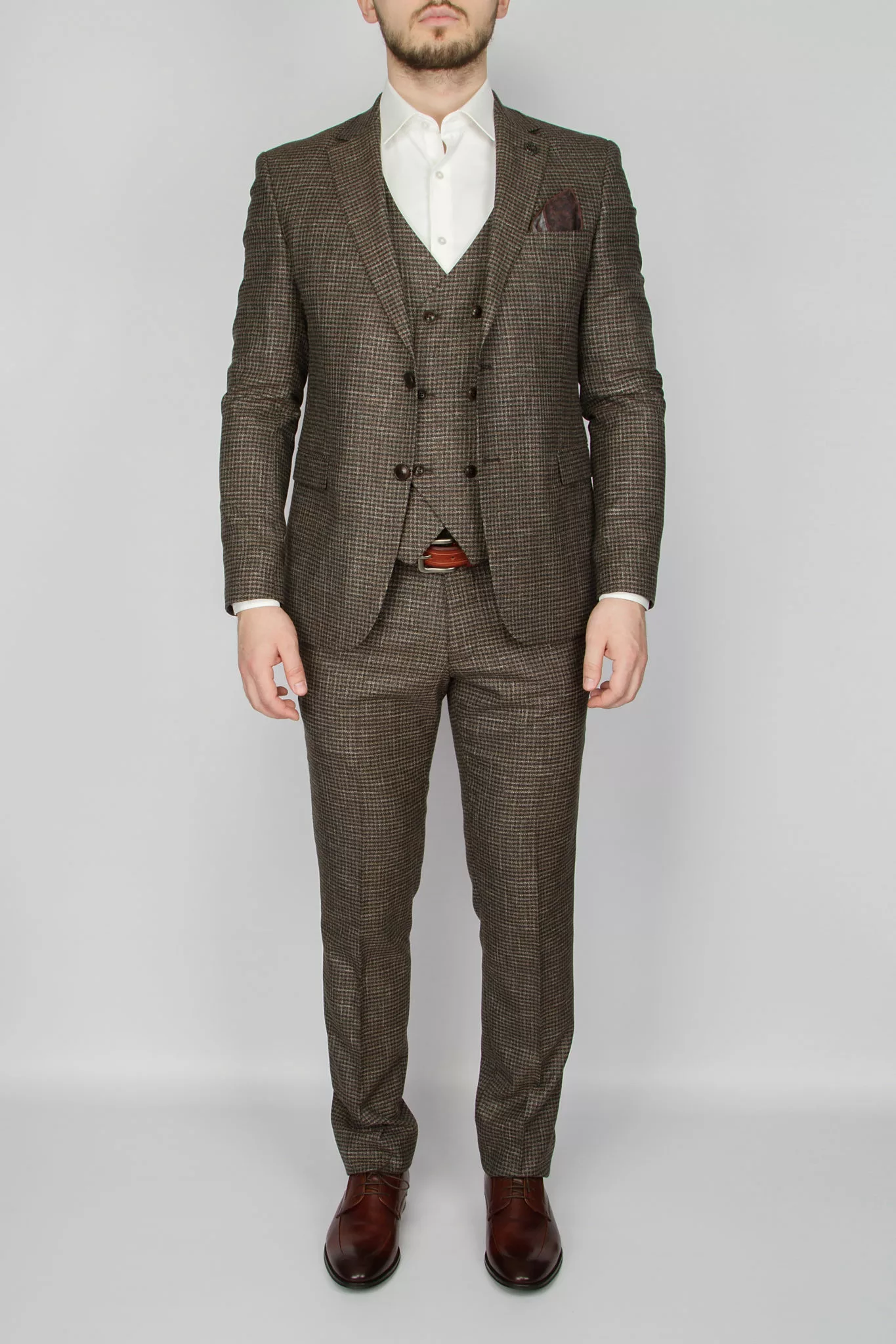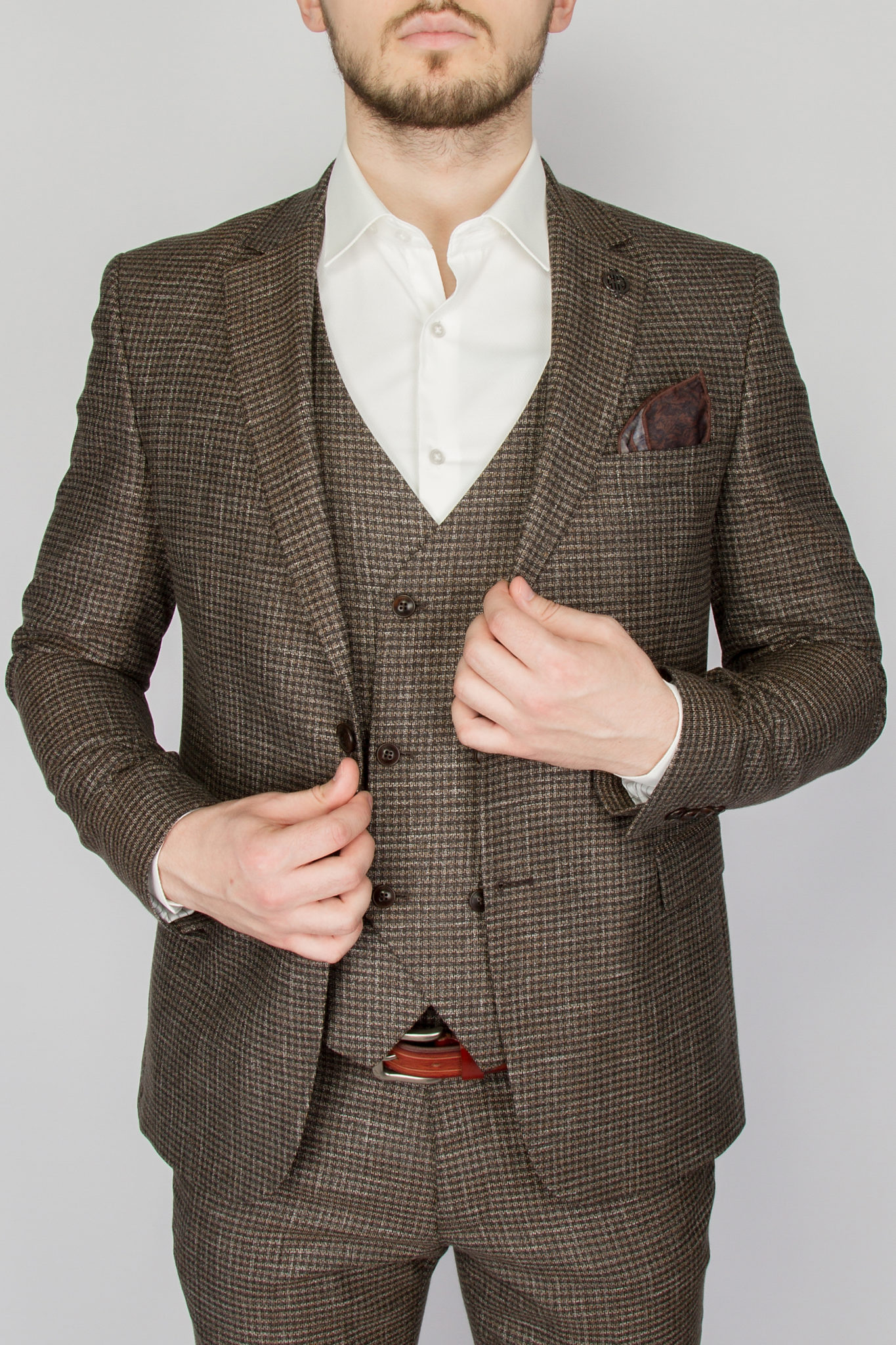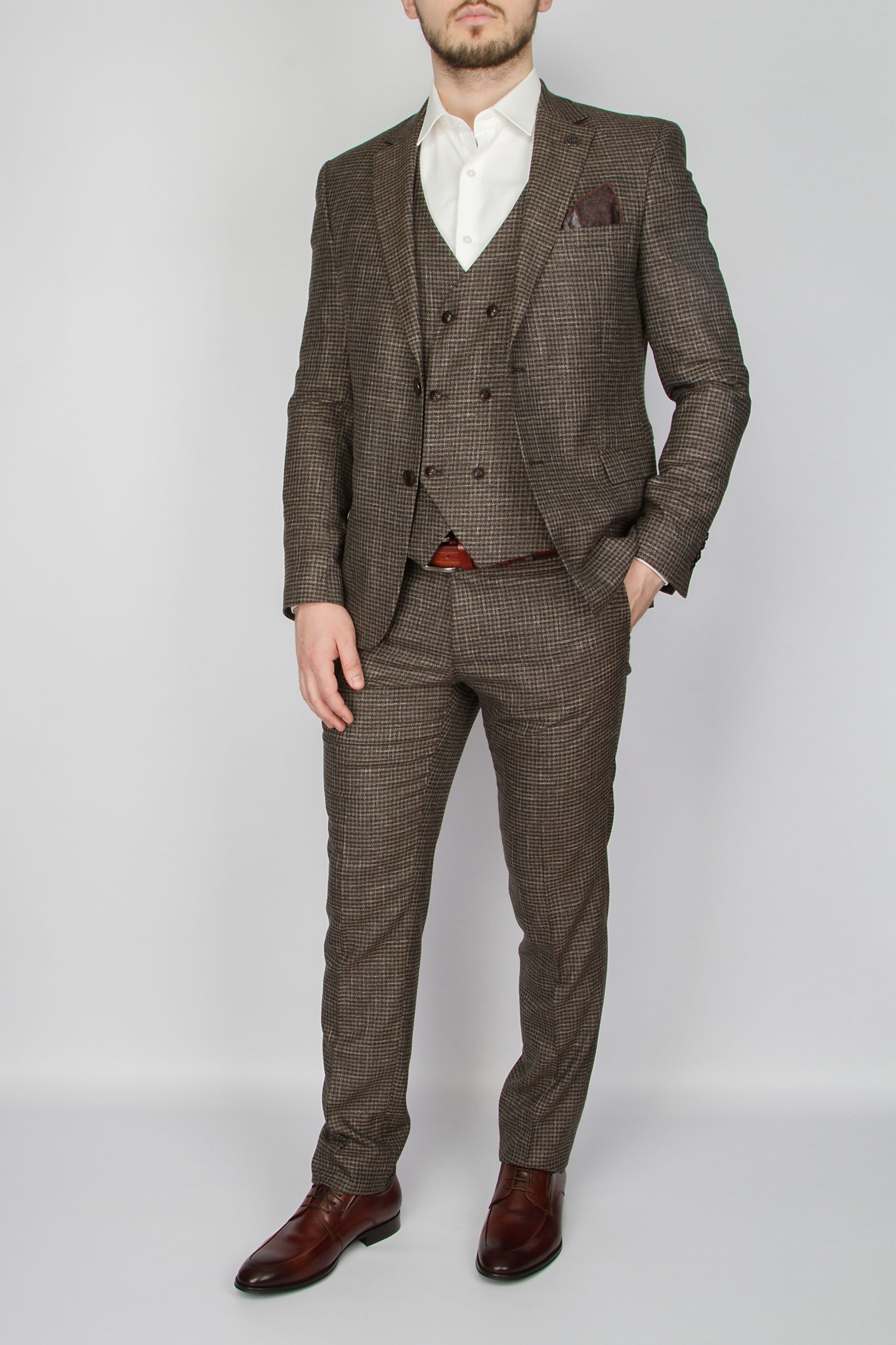 Перейти к товару Костюм-тройка песочного цвета в тонкую клетку