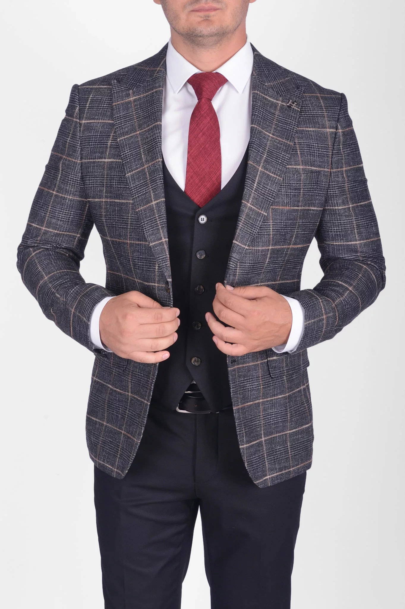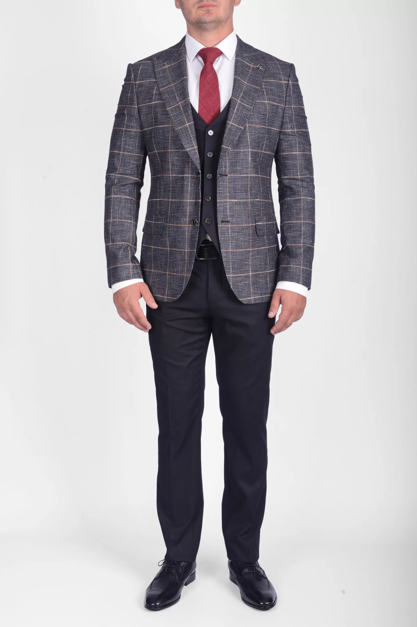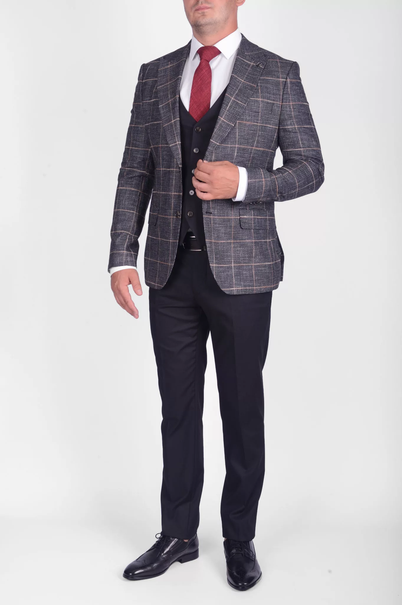 Перейти к товару Костюм-тройка в крупную клетку с однотонными брюками