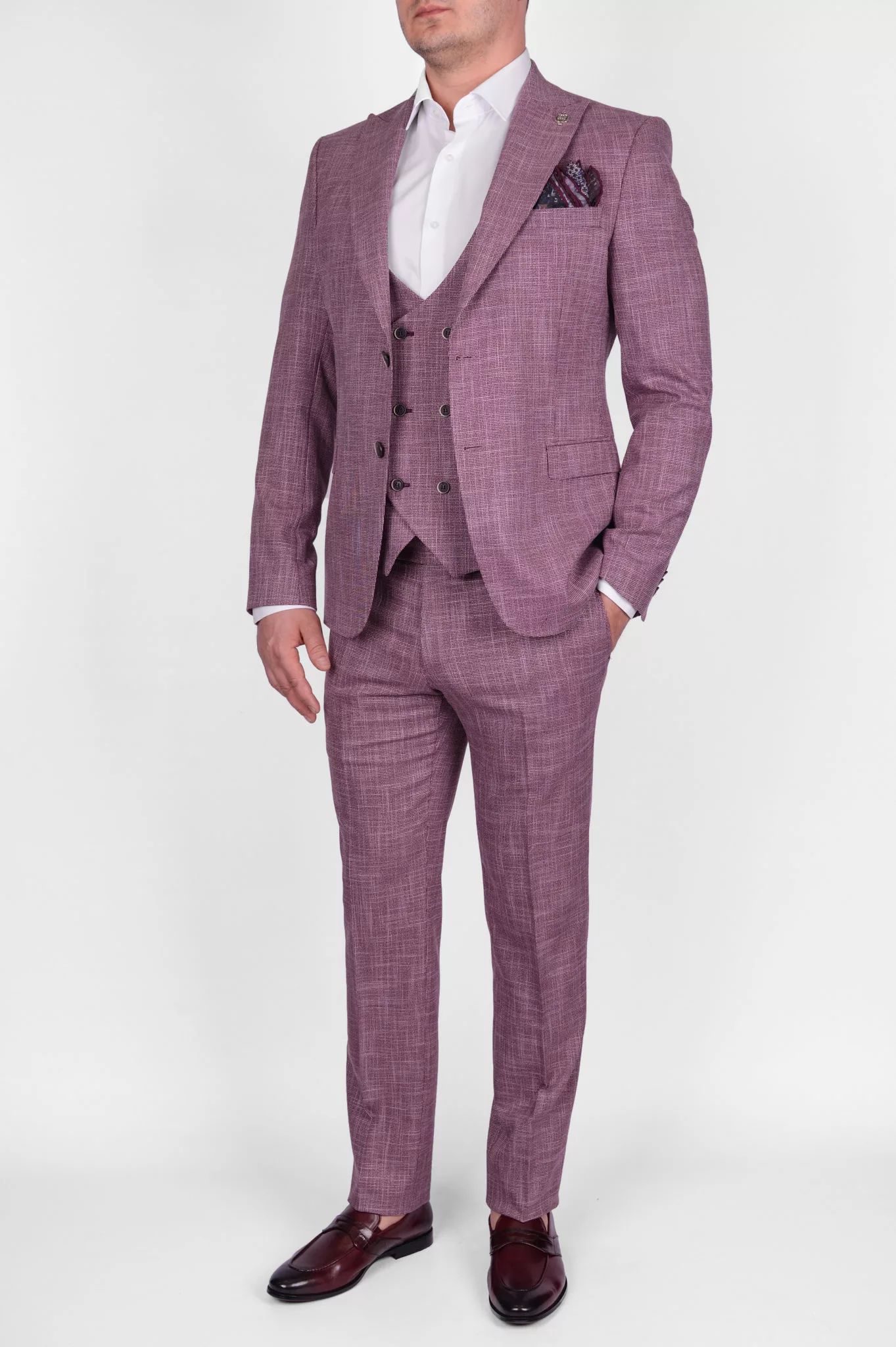 Перейти к товару Костюм-тройка вишневого цвета с выработкой