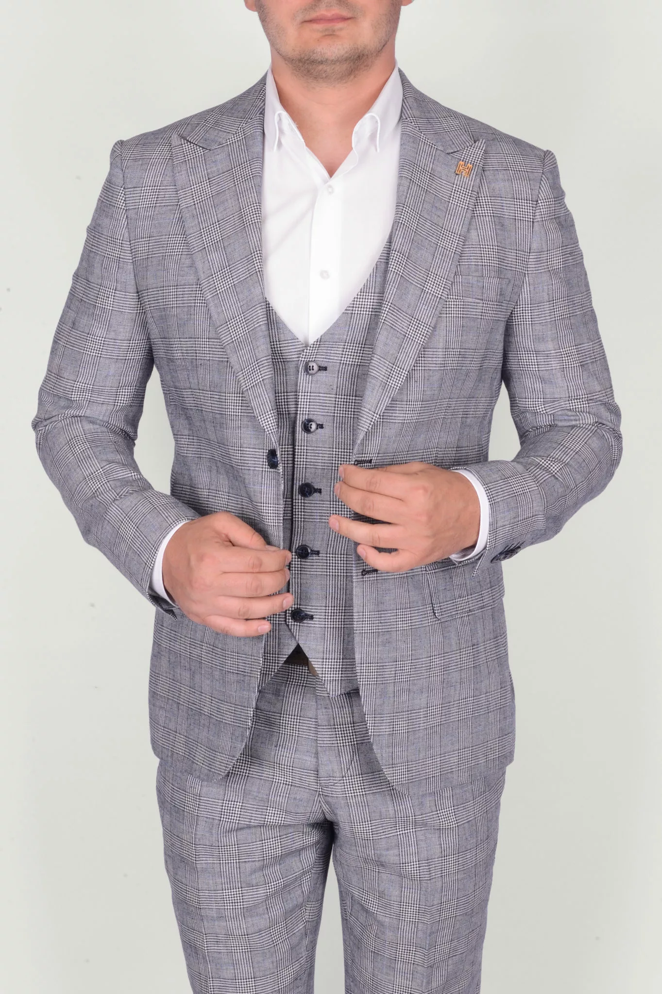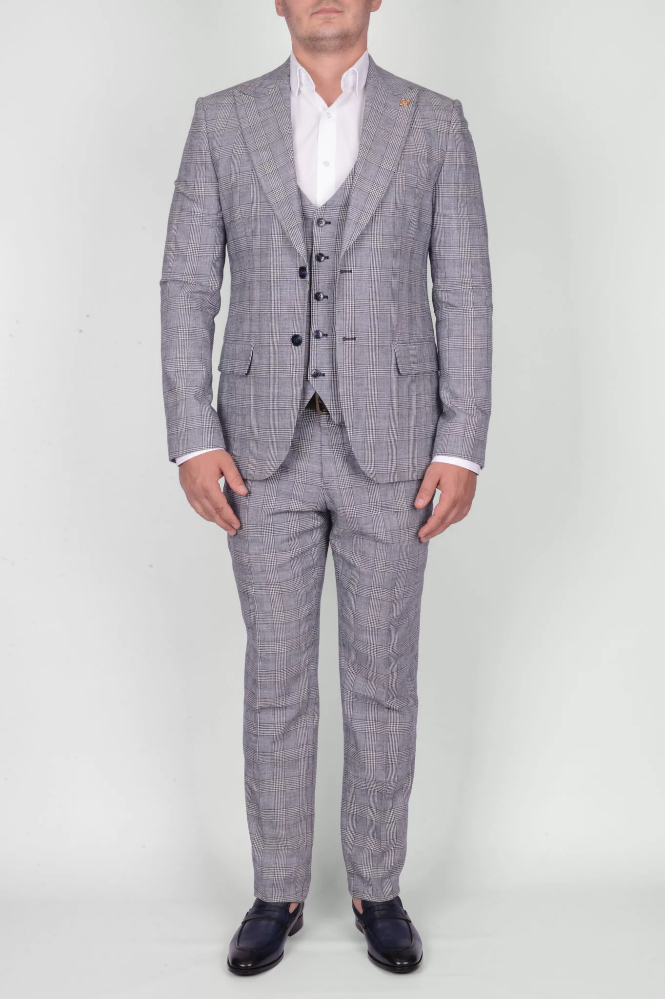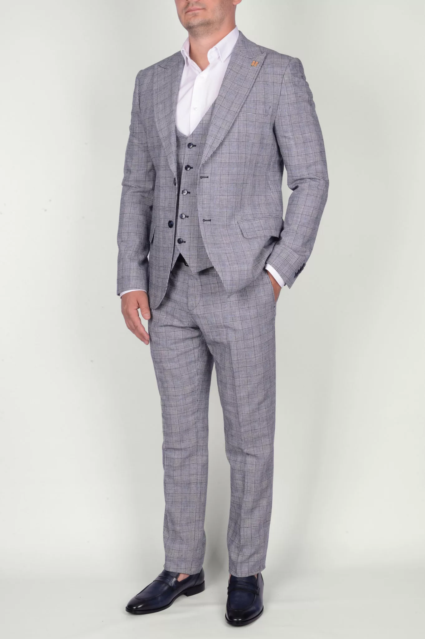 Перейти к товару Костюм-тройка светло-серого цвета в клетку