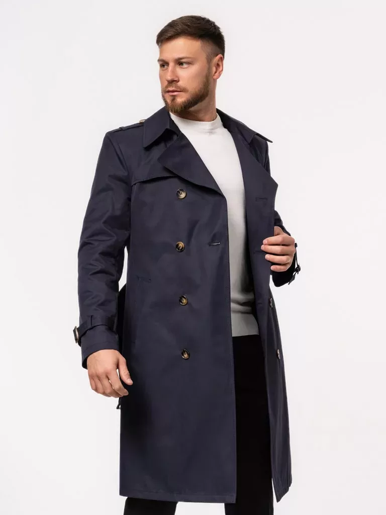 Плащ-тренч чернильно-синего цвета