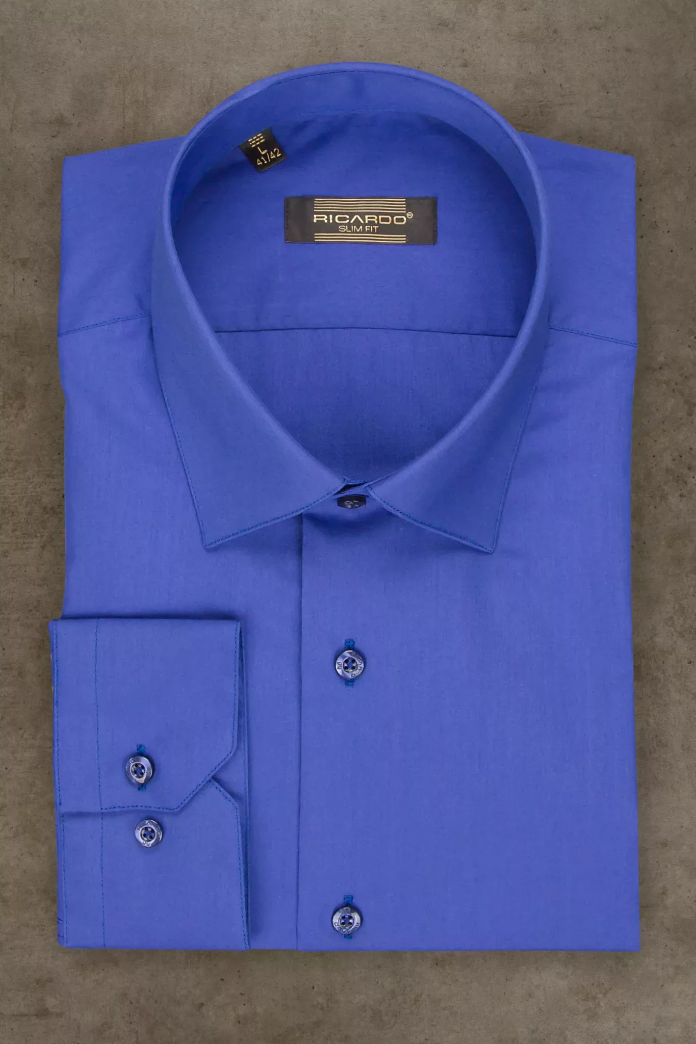 Перейти к товару Рубашка синего цвета приталенная, стрейчевая