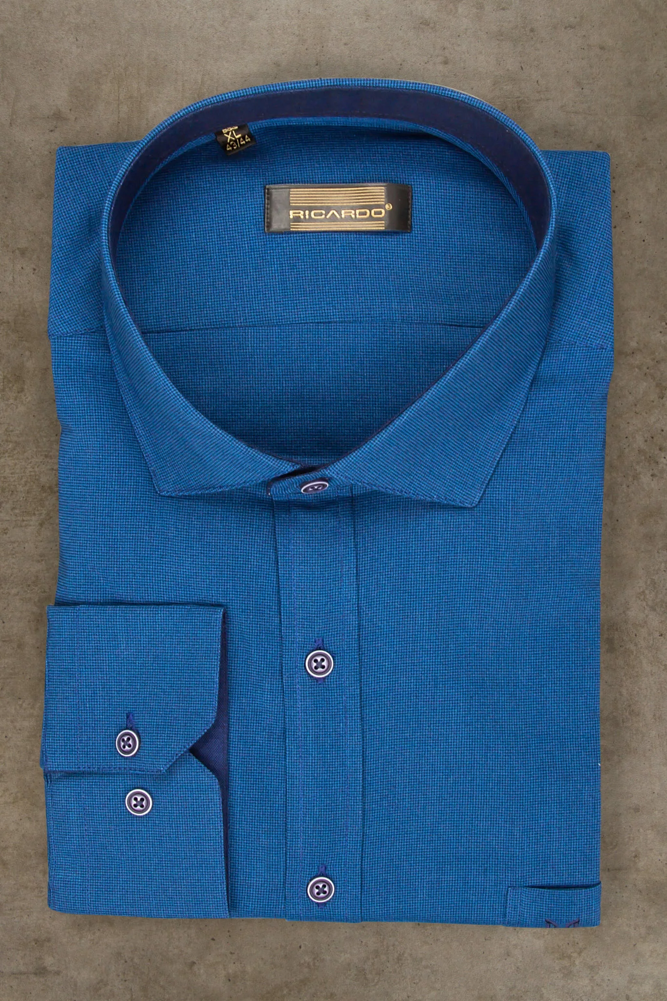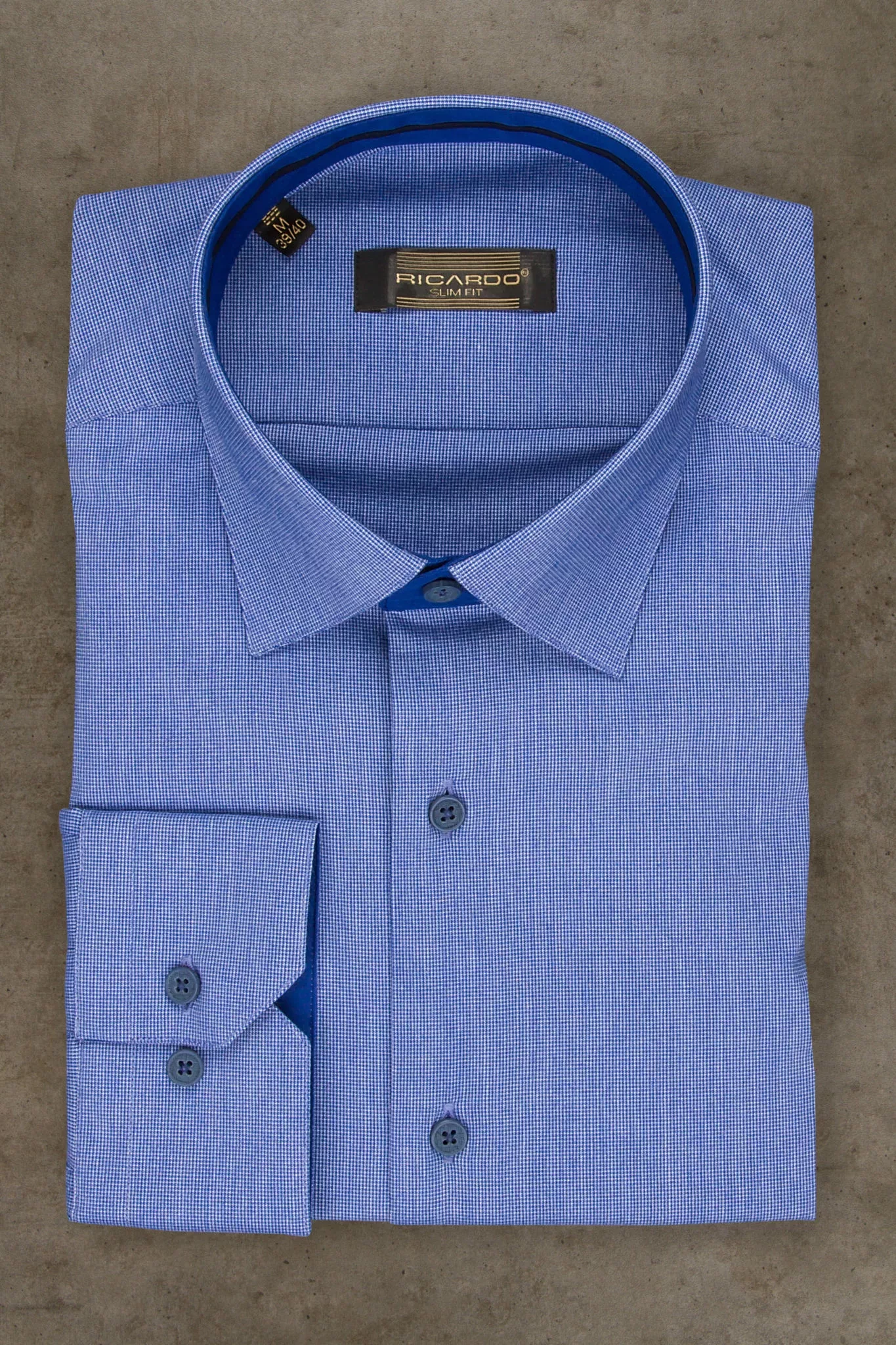 Перейти к товару Рубашка синего цвета, ткань стрейчевая