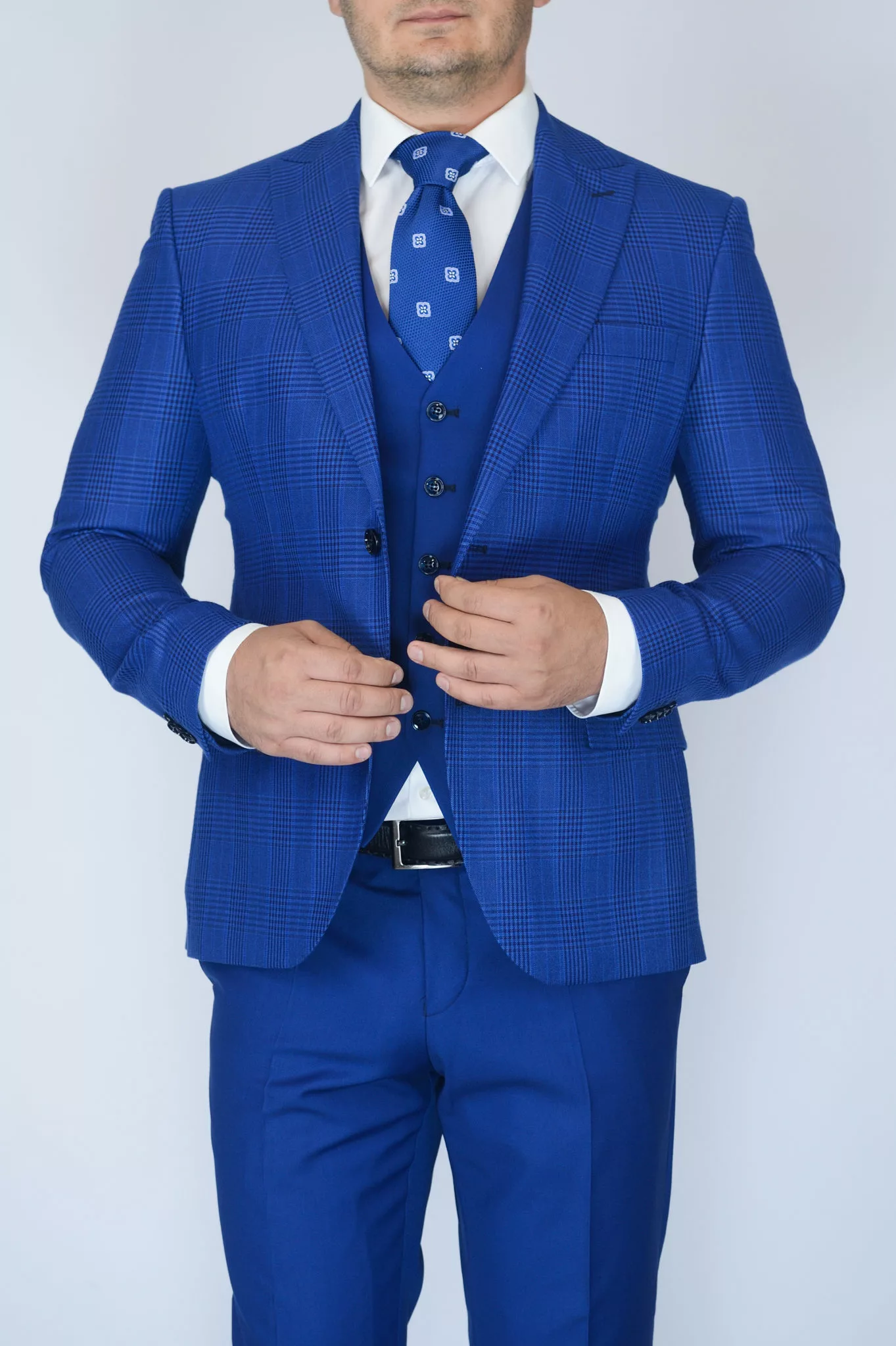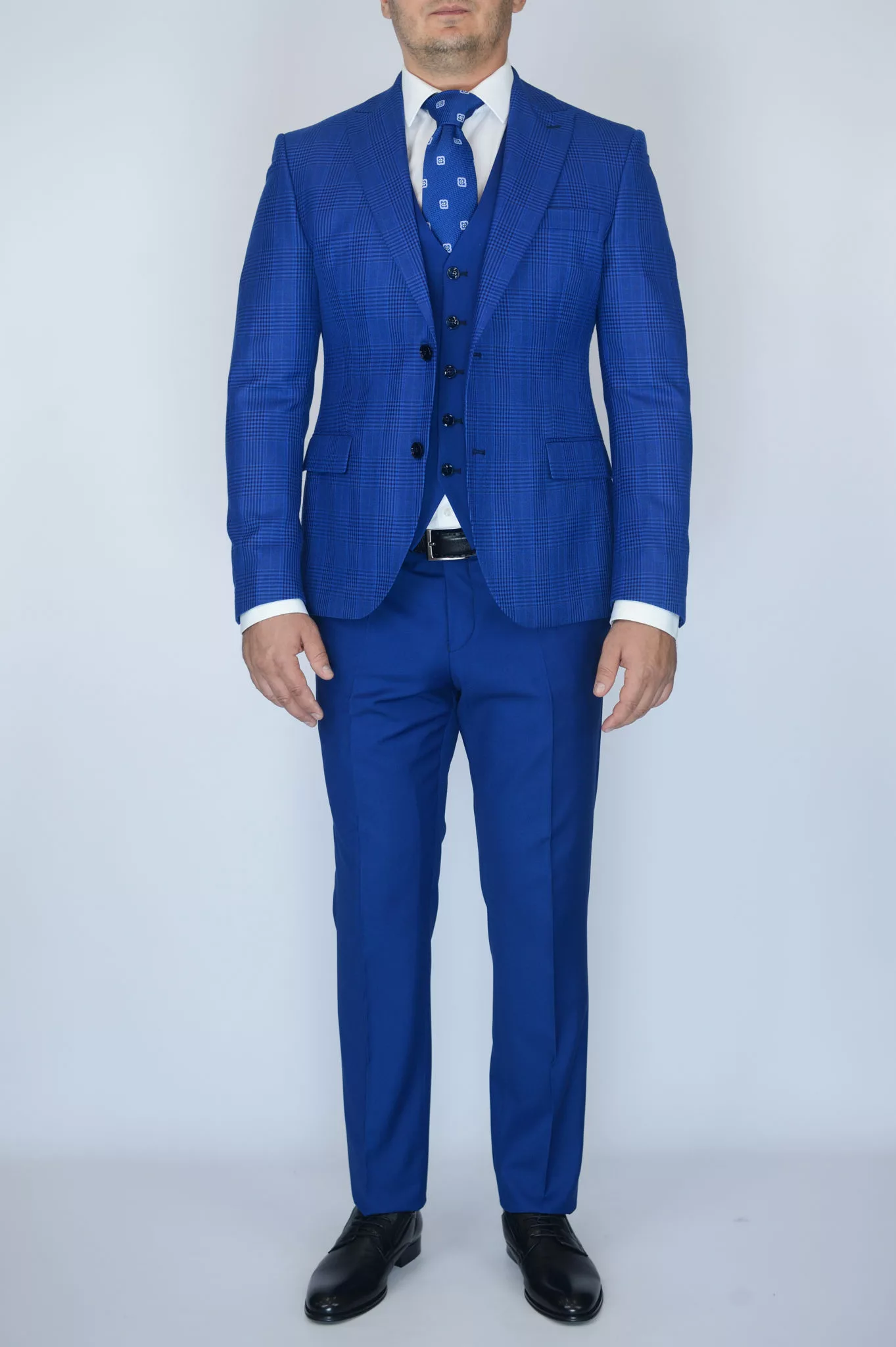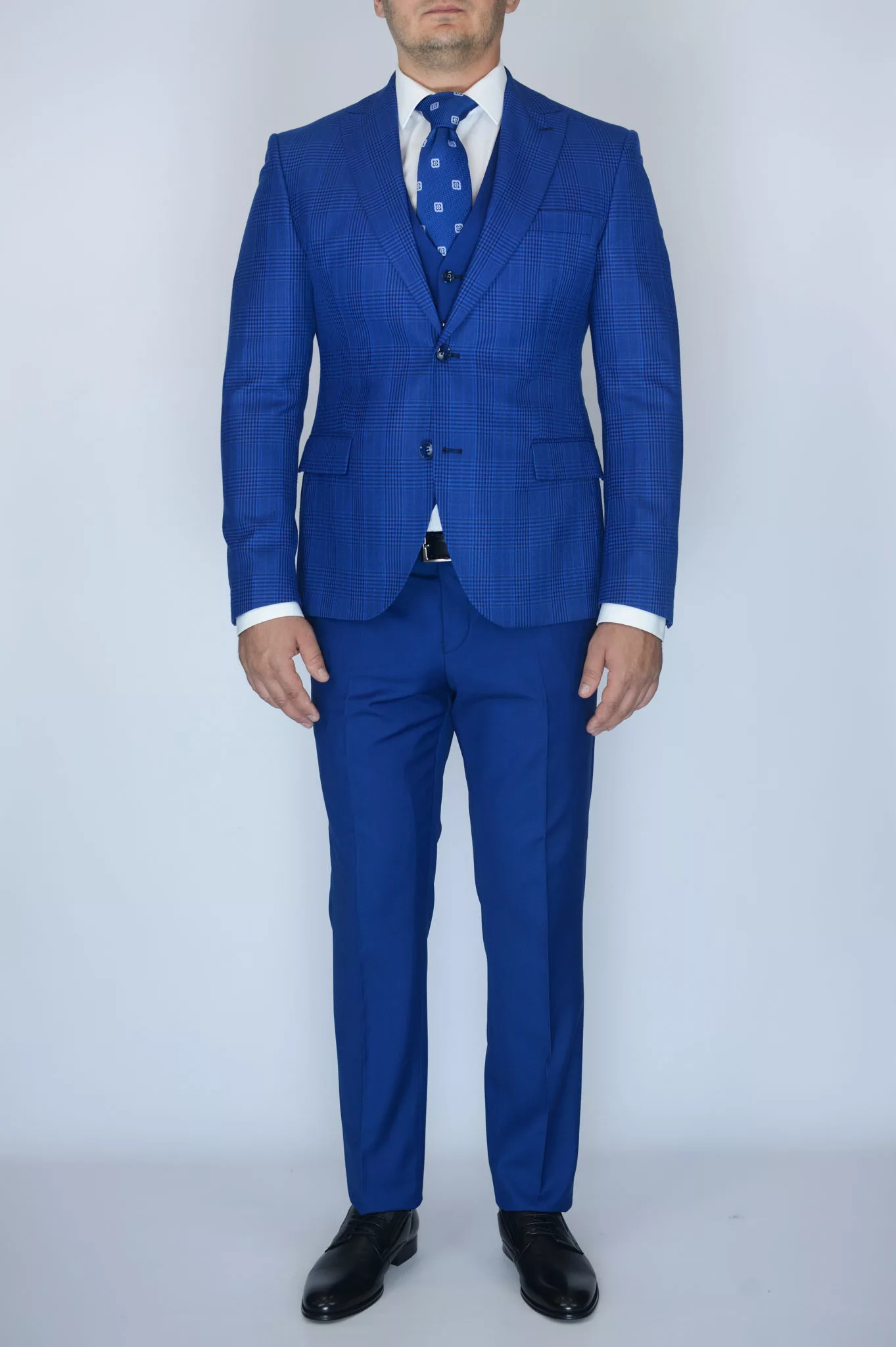 Костюм-тройка светло-синего цвета с клетчатым пиджаком
