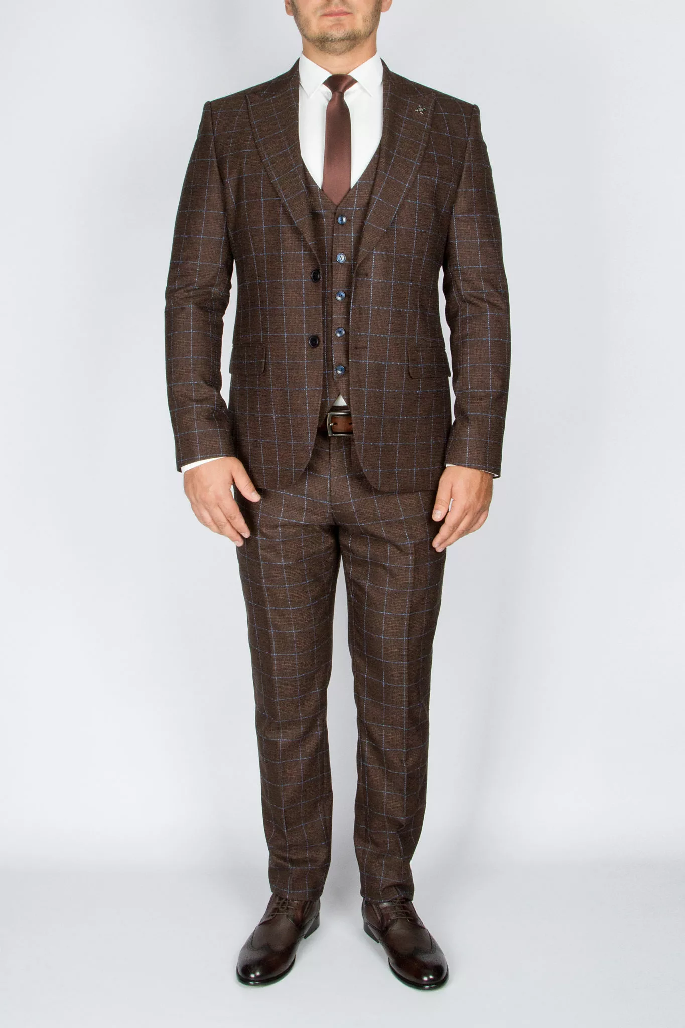Костюм-тройка шоколадного цвета в голубую клетку