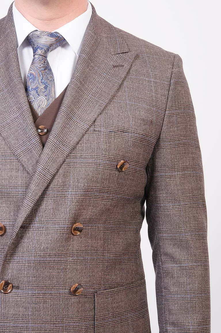 Двубортный костюм-тройка песочного оттенка