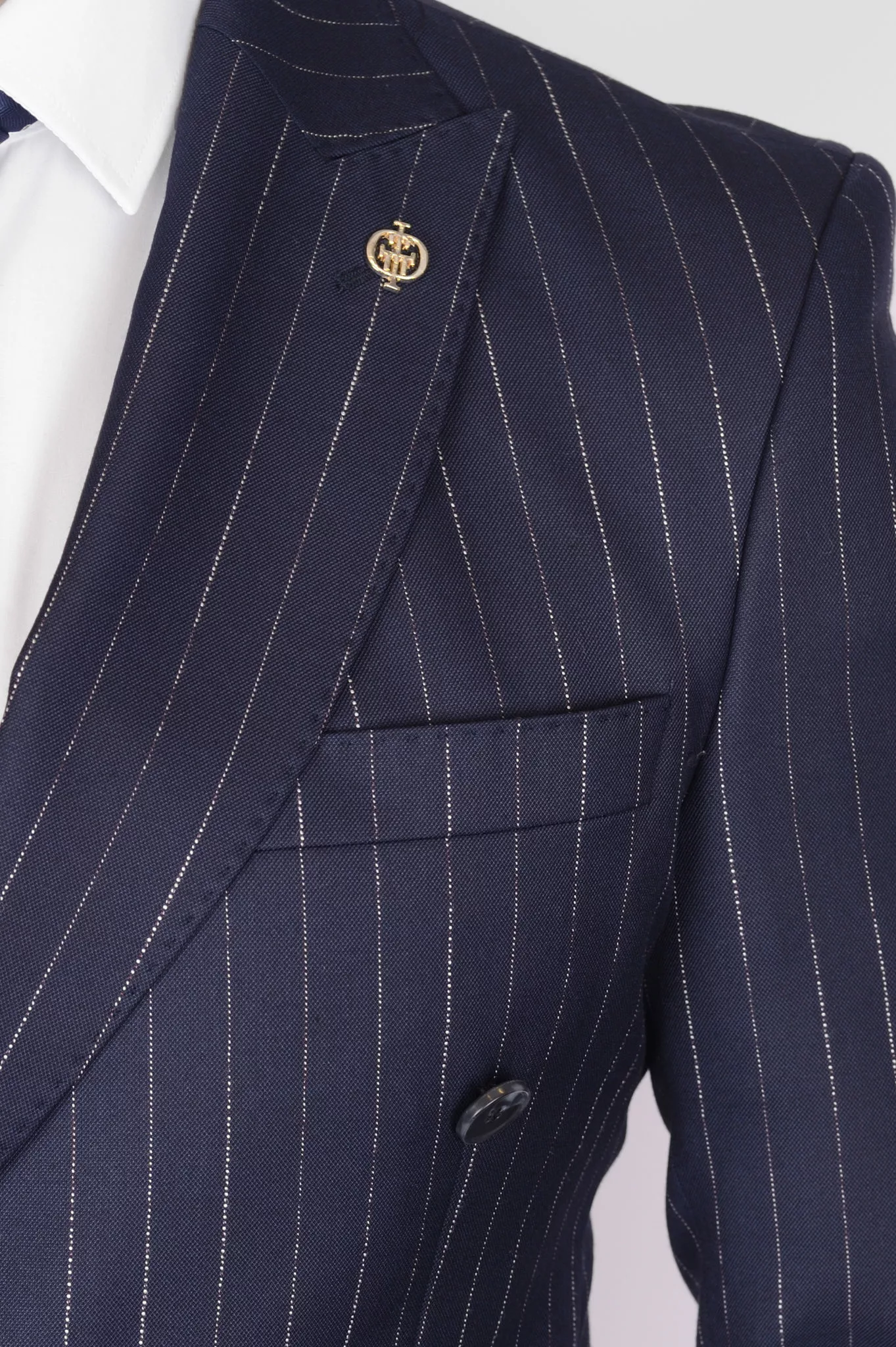 Двубортный костюм в тонкую полосу
