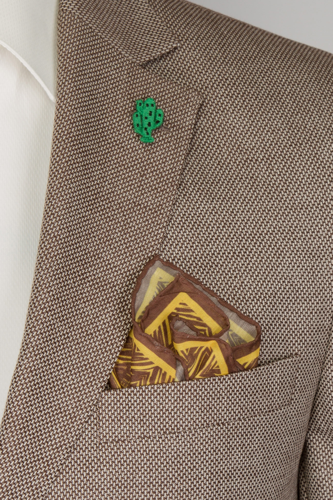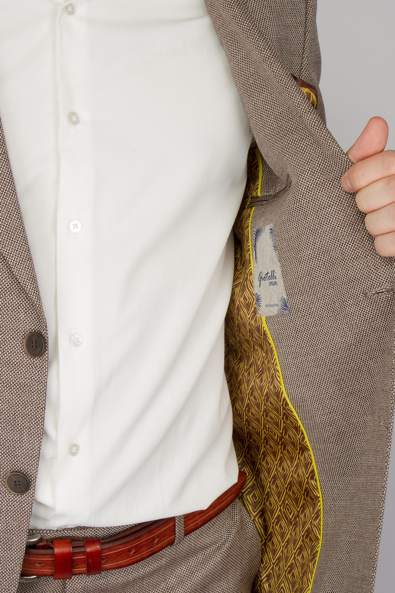 Предлагаем рассмотреть летний вариант костюма, отшит в приталенной модели slim-fit. Пиджак имеет застежку на две пуговицы, лацкан воротника «заостренной» формы, нагрудный карман с листочкой, комплектуется платком, накладные боковые карманы. Пиджак облегченный, спина без подкладочной ткани. Брюки слегка приужены, посадка занижена. По вашей просьбе мы бесплатно подгоним длину брюк под вашу ростовку.