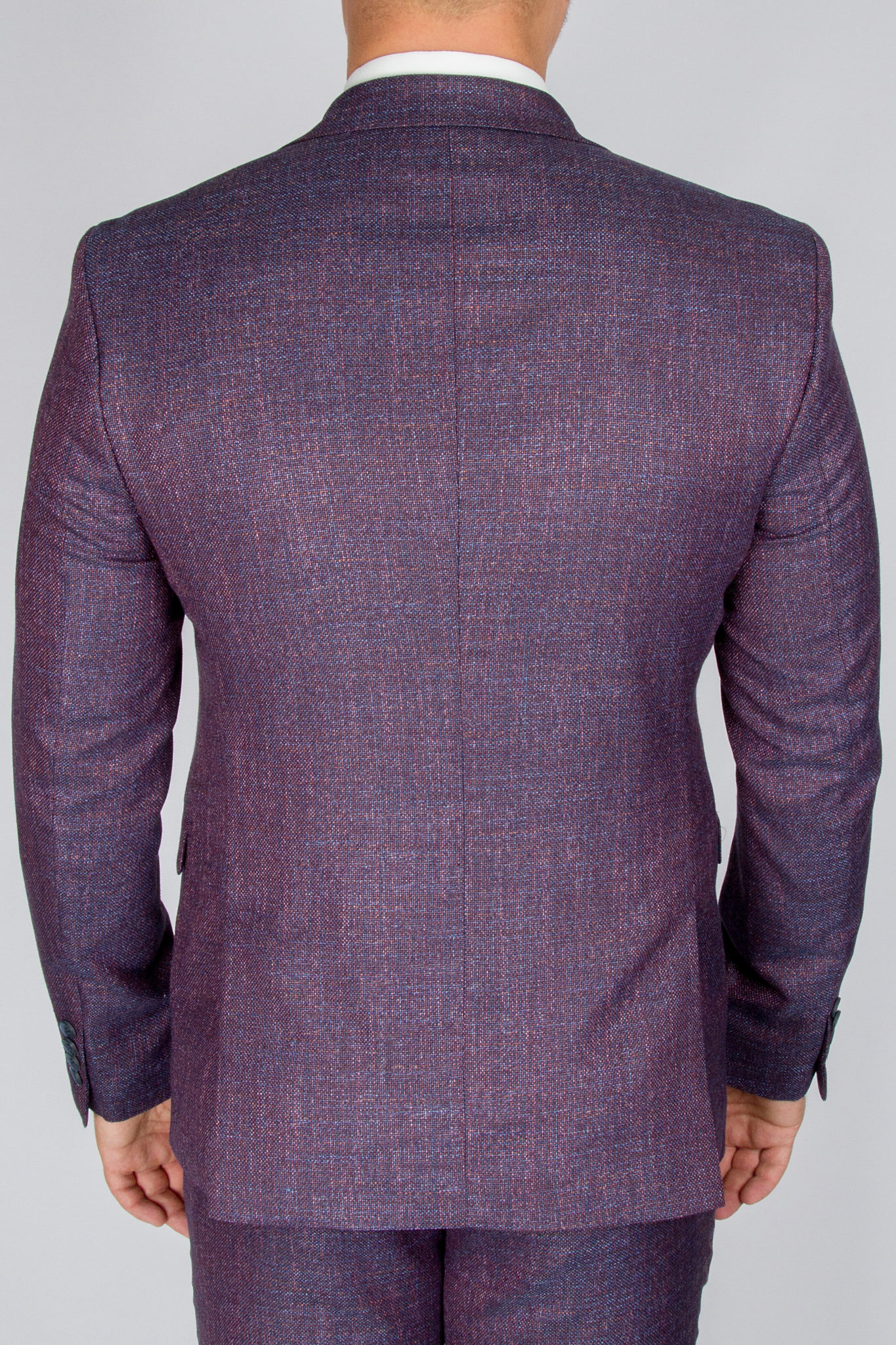 Костюм-двойка, отшит в приталенной модели slim-fit. Пиджак имеет застежку на две пуговицы, лацкан воротника «заостренной» формы, нагрудный карман с листочкой, комплектуется платком, накладные боковые карманы. Пиджак облегченный, спина без подкладочной ткани. Брюки слегка приужены, прямого кроя. По вашей просьбе мы бесплатно подгоним длину брюк под вашу ростовку.