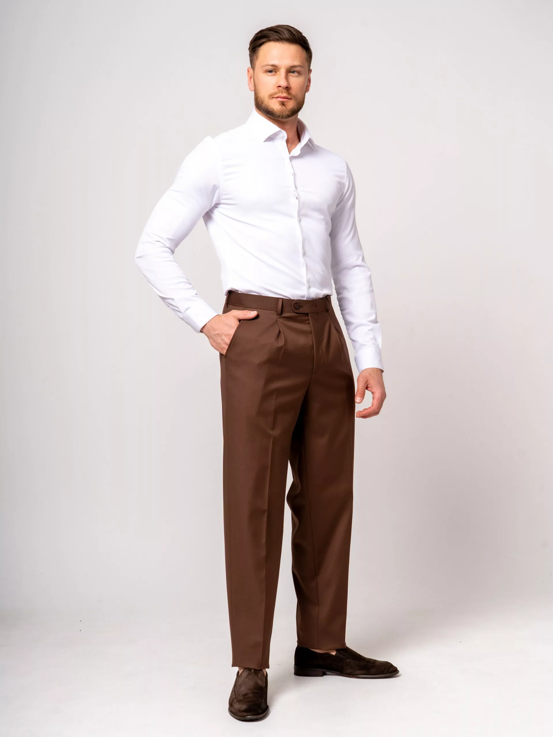 При покупке в шоуруме вы также можете воспользоваться примеркой и бесплатной подгонкой брюк.