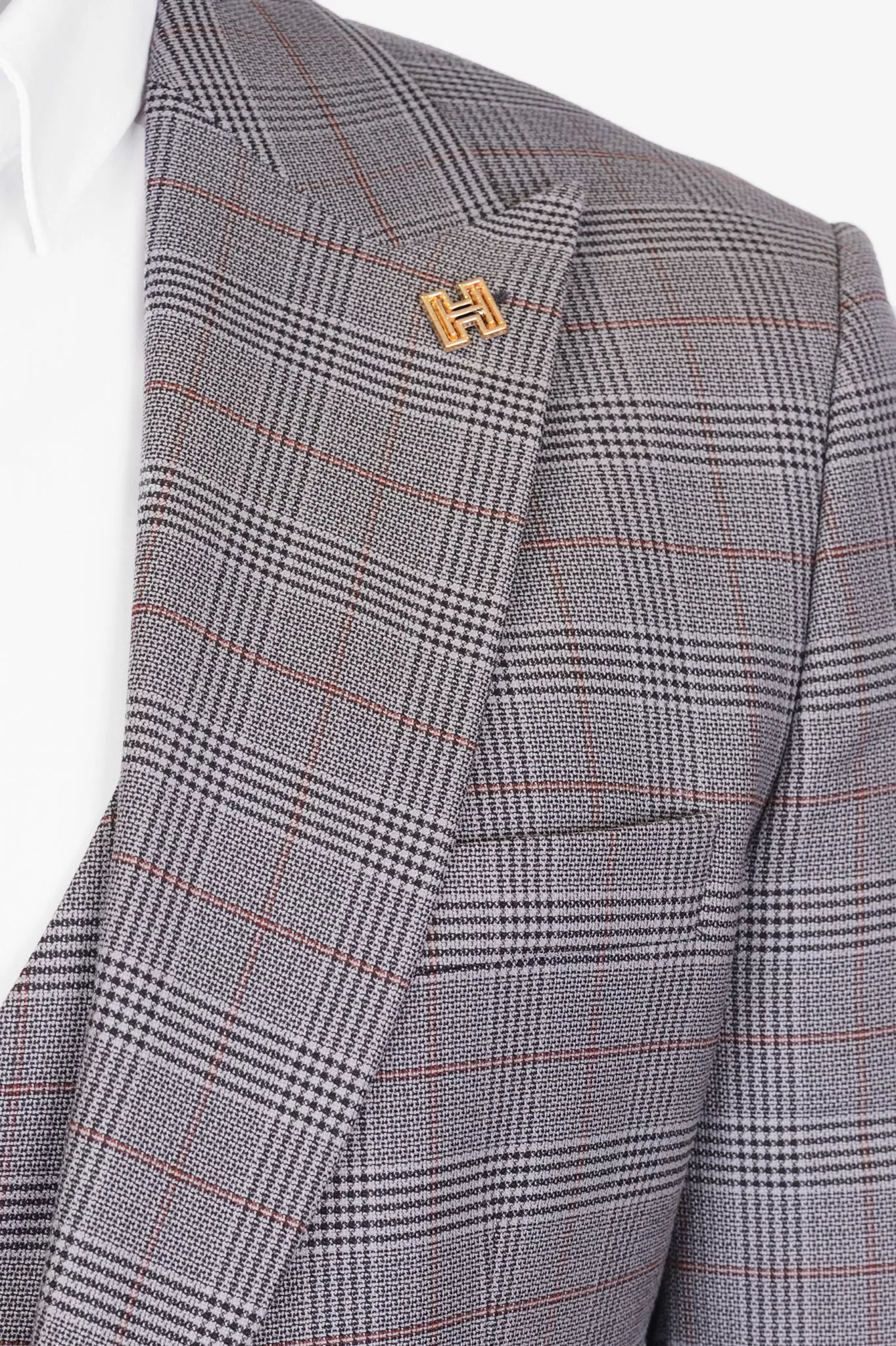Бежевый цвет костюма дополненный сложной структурной клеткой, отлично подойдет для торжественных случаев таких как свадьба, выпускной вечер, день рождения.