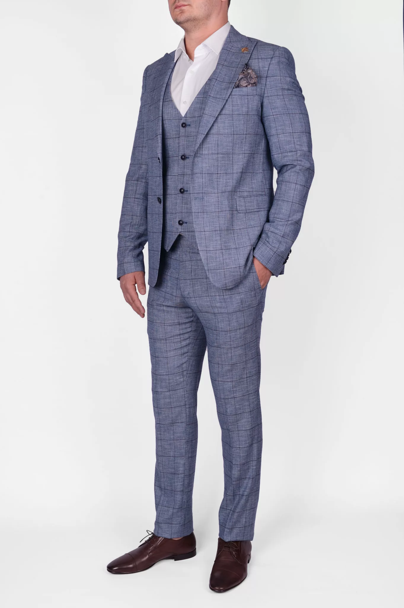 Костюм-тройка бирюзового цвета в клетку