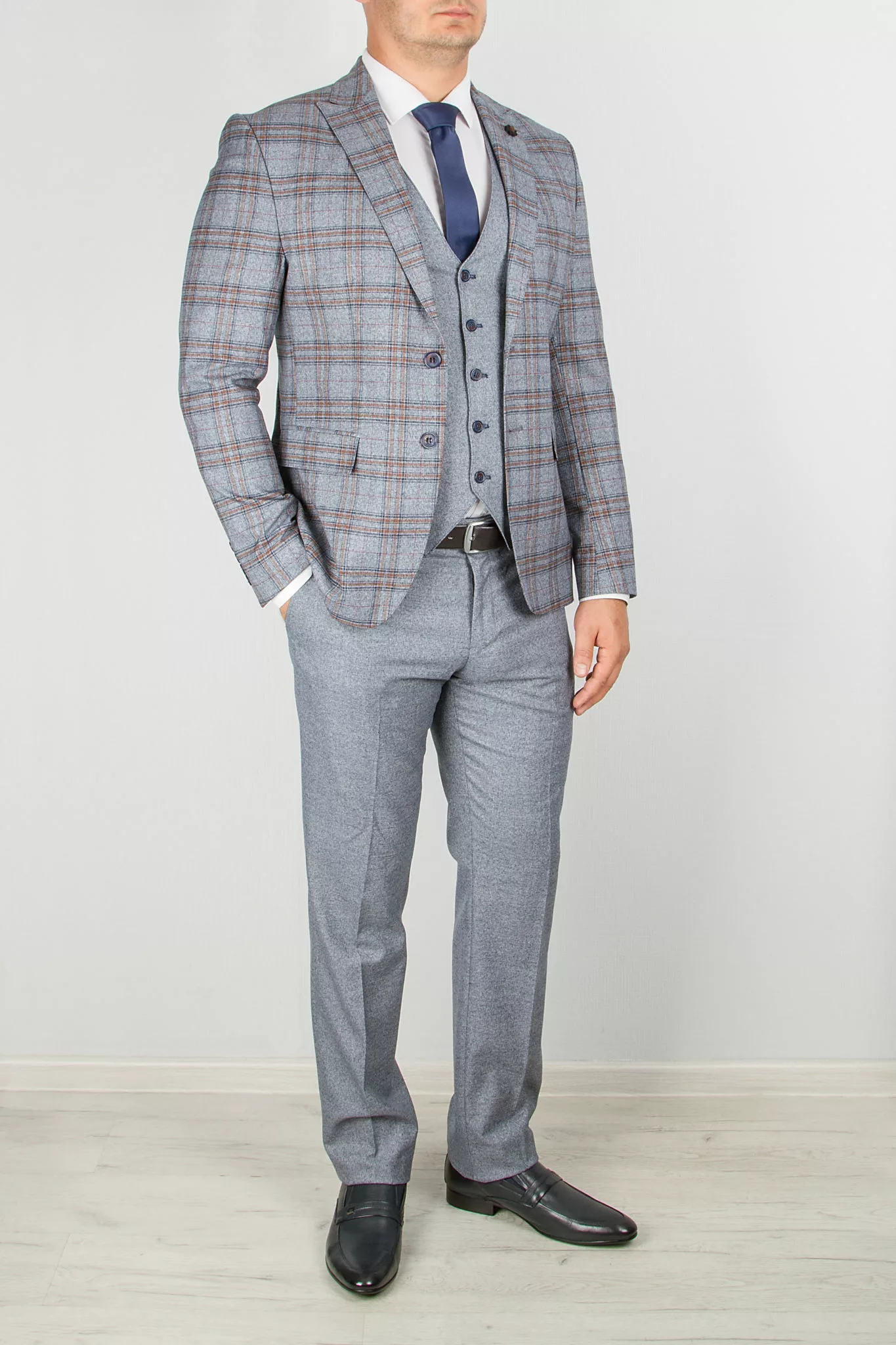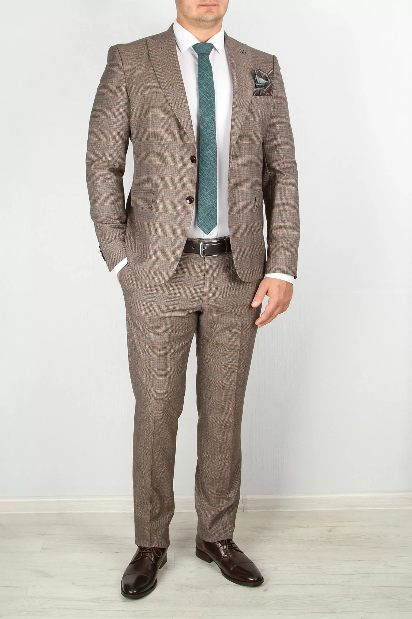 Костюм отшит в полуприталенной модели regular-fit. Пиджак имеет застежку на две пуговицы, классический лацкан воротника, нагрудный карман с листочкой, комплектуется платком, значок в петлице. Боковые карманы пиджака скошенные. Брюки, современного прямого кроя, имеют свободную длину. По вашей просьбе мы бесплатно подгоним длину брюк под вашу ростовку. Костюм отшит из смесовой ткани высокого качества в составе 65% шерсти и 33% вискозы и 2% эластан, что позволяет долго сохранять презентабельный внешний вид и форму, ткань устойчива к заминанию.