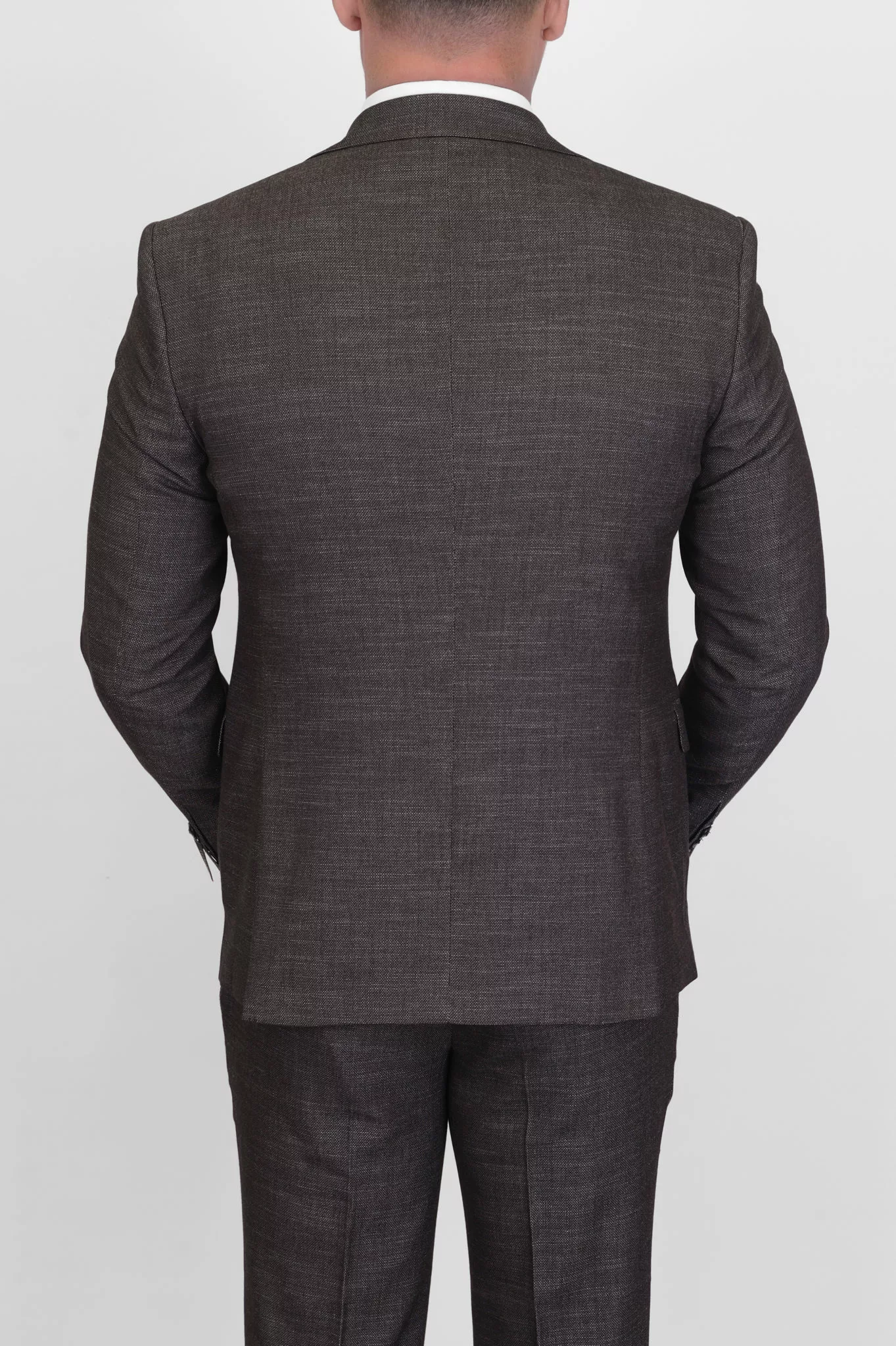 Костюм плотной посадки, отлично садится на стройную фигуру. Данная модель отшита в очень редком насыщенном кофейном цвете, ткань имеет структурный рисунок, отлично подойдет для офиса и повседневной носки. Жилет костюма по спине также тканевый, что позволяет использовать его отдельно только с брюками.