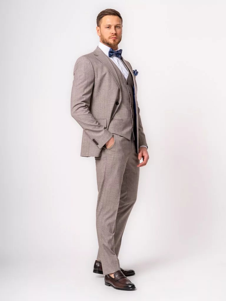 Костюм-тройка кофейный в клетку