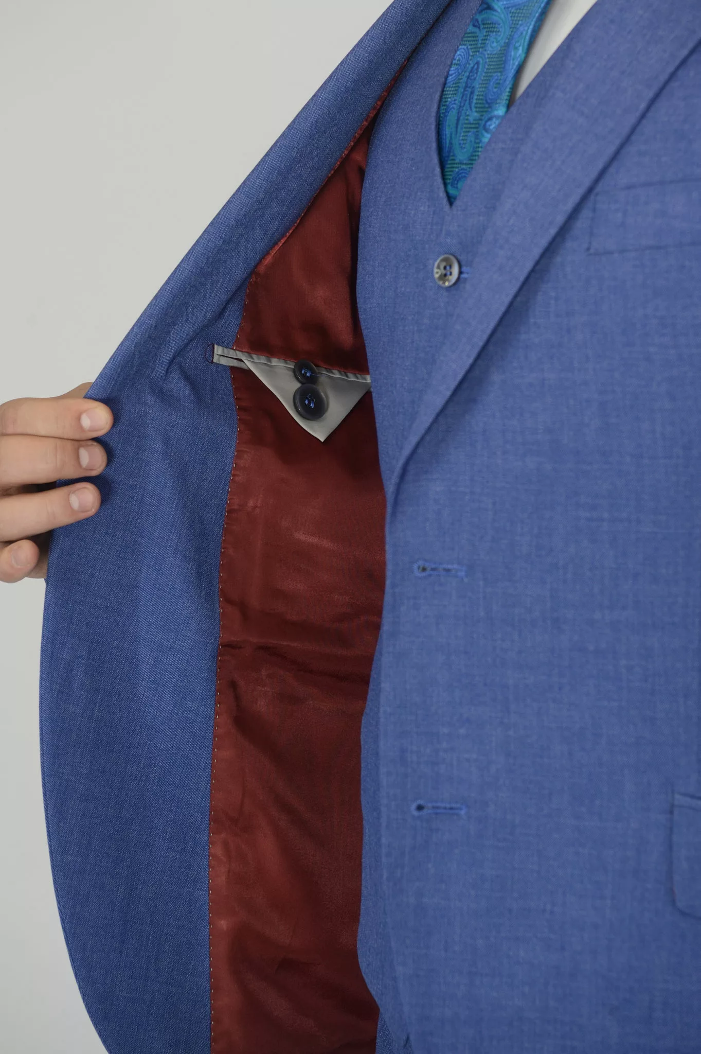 Костюм отшит в полуприталенной модели regular fit. Пиджак имеет застежку на две пуговицы, широкий лацкан воротника, нагрудный карман с листочкой комплектуемый платком. Однобортный жилет с пуговицами в цвет пиджака, спина также из основной (не подкладочной) ткани. Брюки прямые,слегка приужены, имеют свободную длину. По вашей просьбе мы подгоним длину брюк под вашу ростовку. В костюме яркий, красивый подборт отлично гармонирующий с тканью верха. Костюм отшит из смесовой ткани высокого качества в составе 65% шерсти 33% вискозы и 2% эластан, что позволяет долго сохранять презентабельный внешний вид и форму, ткань устойчива к заминанию.