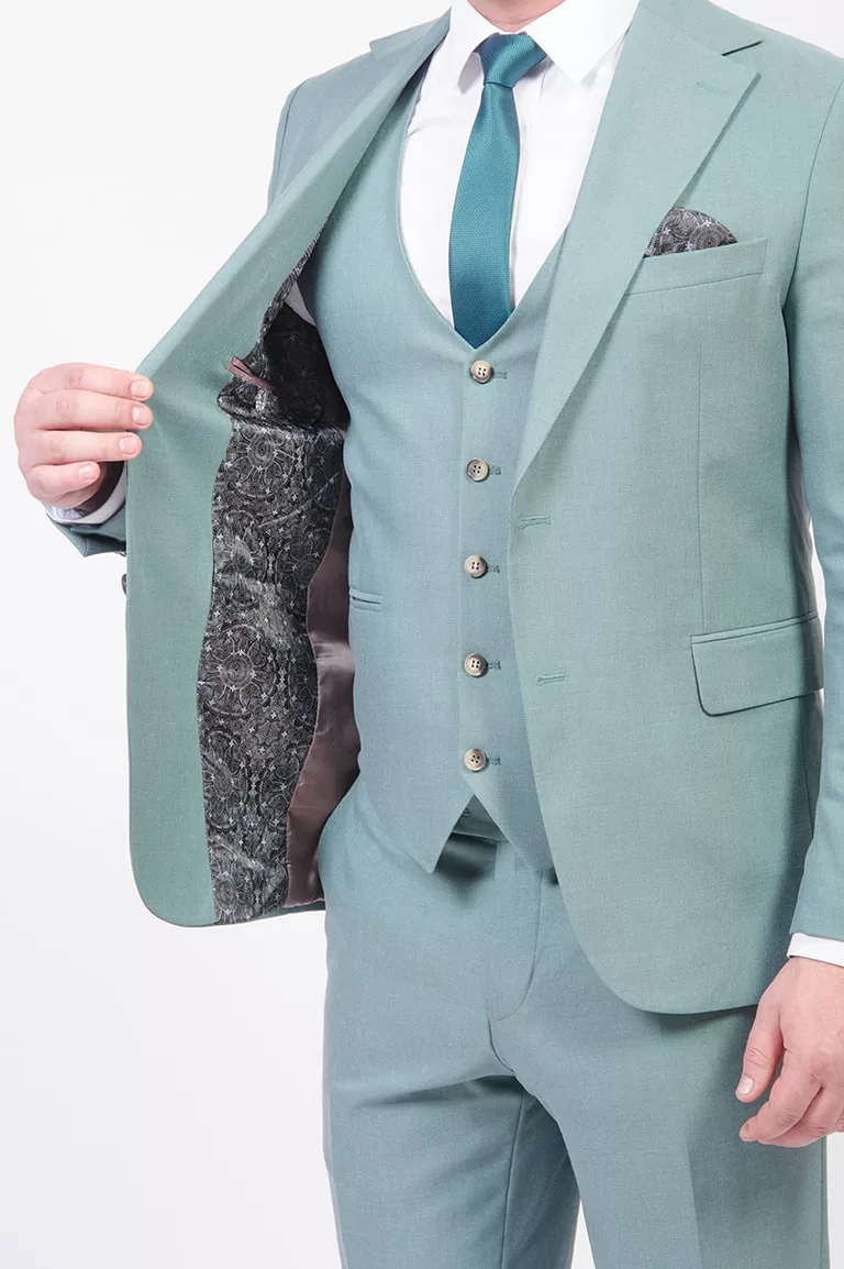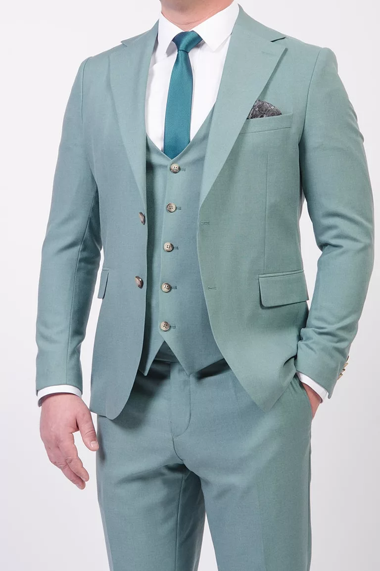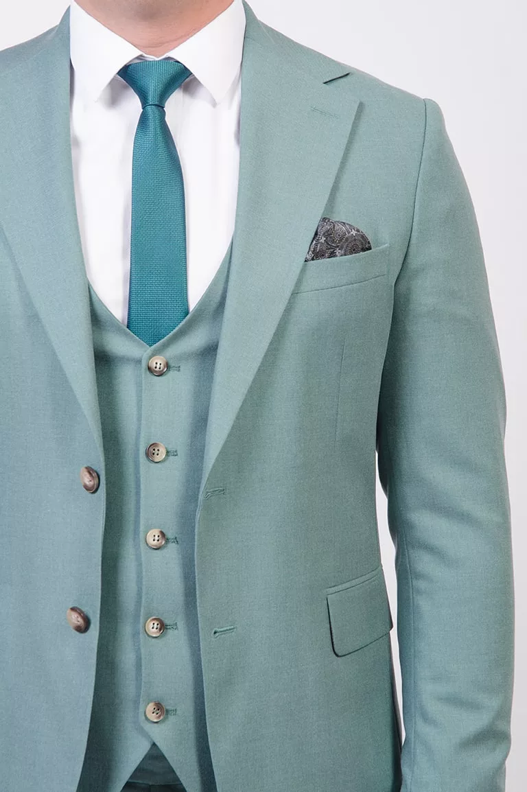 Костюм очень красивого, светло-зеленого (мятного) оттенка, отлично подойдет для торжественных случаев таких как свадьба, выпускной вечер, день рождения.