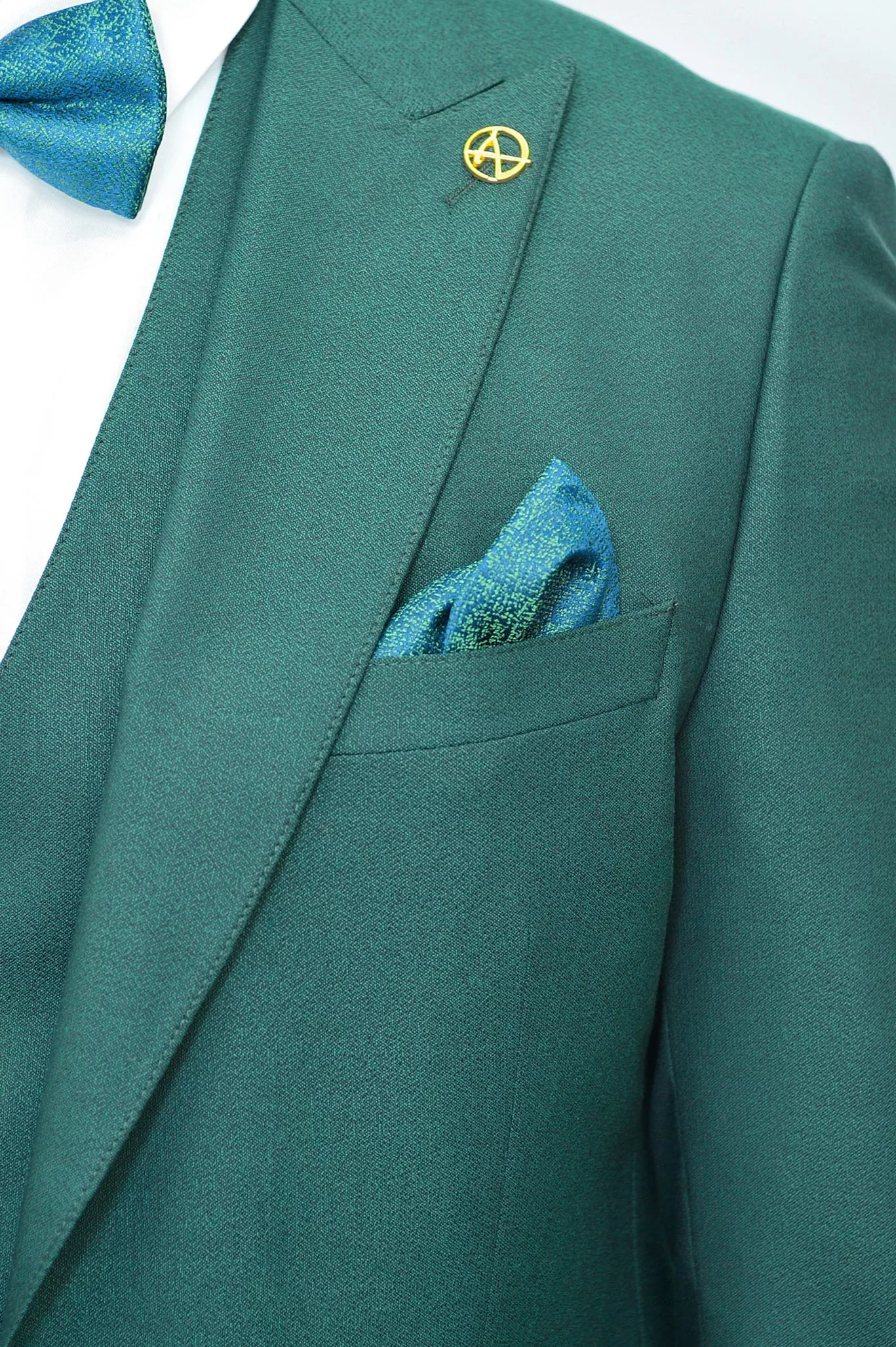Костюм очень красивого, насыщенно-зеленого оттенка, отлично подойдет для торжественных случаев таких как свадьба, выпускной вечер, день рождения. Отшит в современной модели с накладными карманами. Костюм произведен на современном оборудовании из качественных материалов.