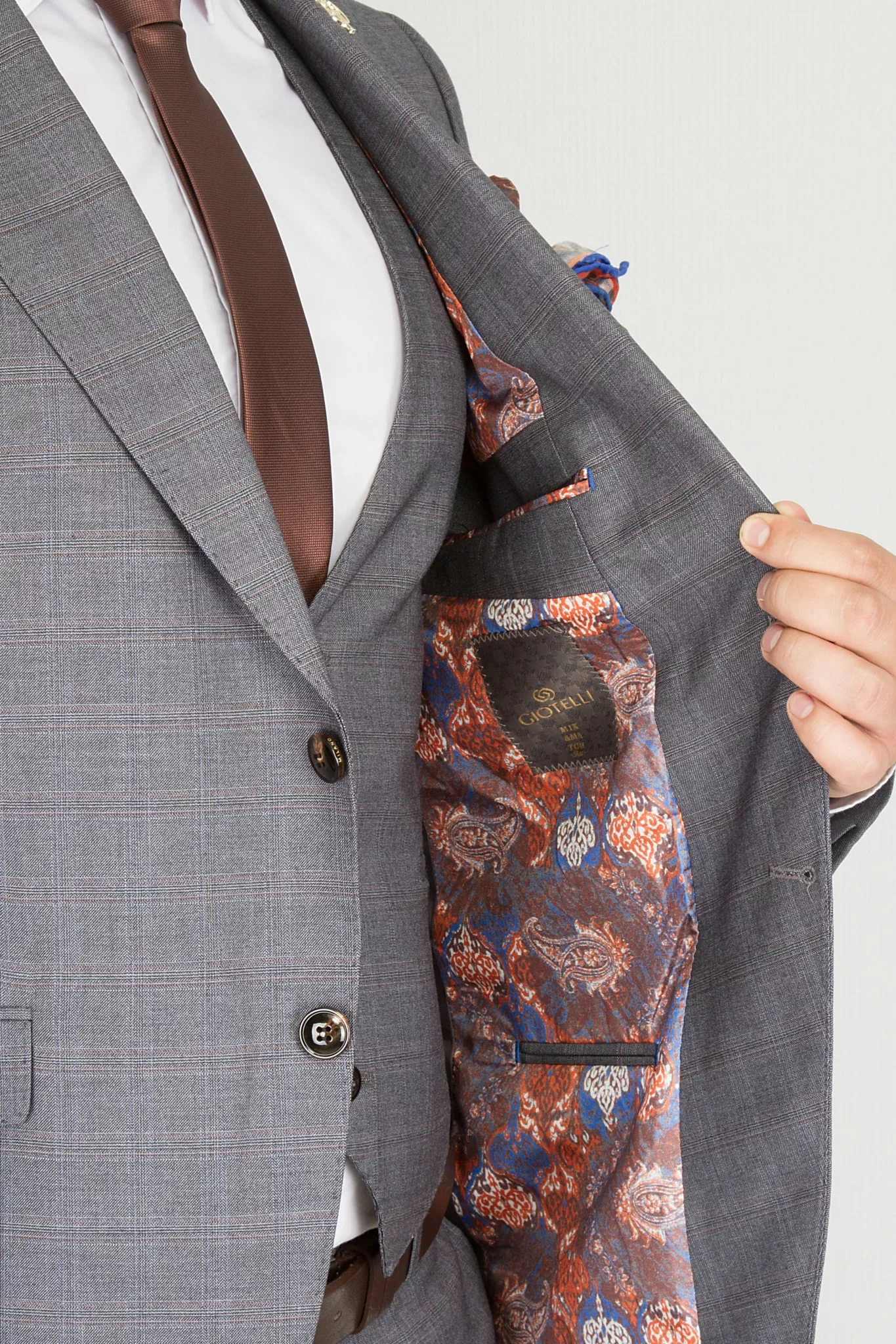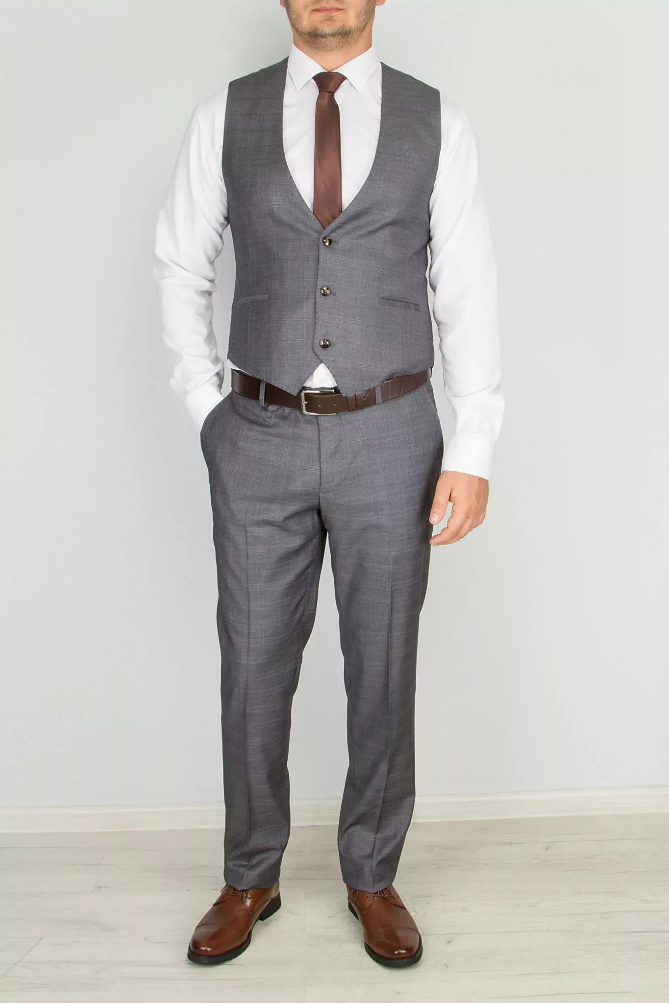 Костюм-тройка пепельно-серого цвета в неброскую клетку