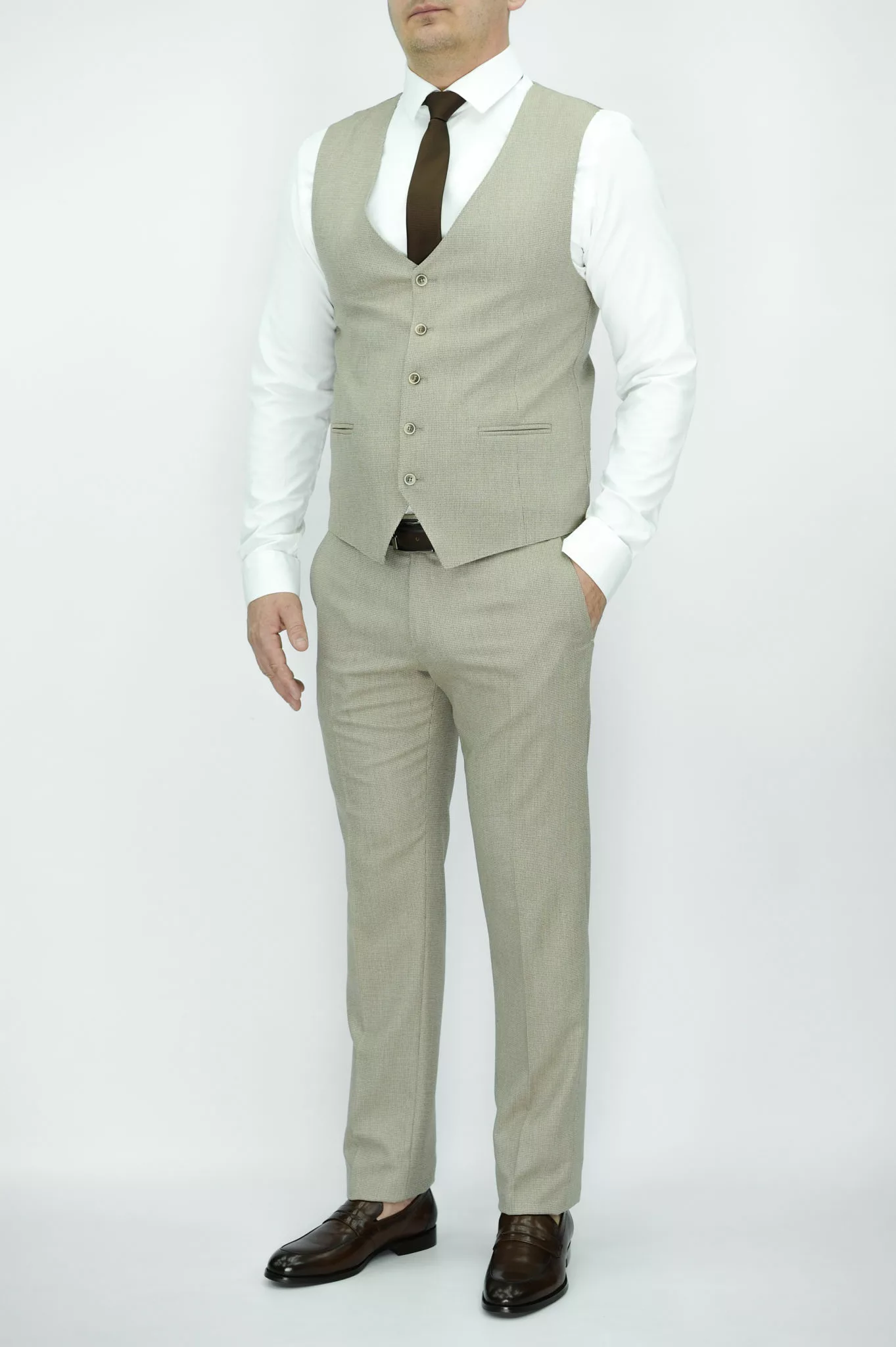 Костюм-тройка песочного цвета перфорированная ткань