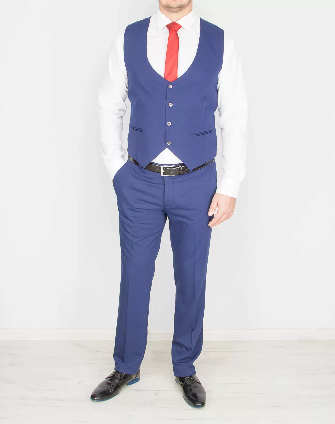 Костюм-тройка, приталенная модель синего цвета