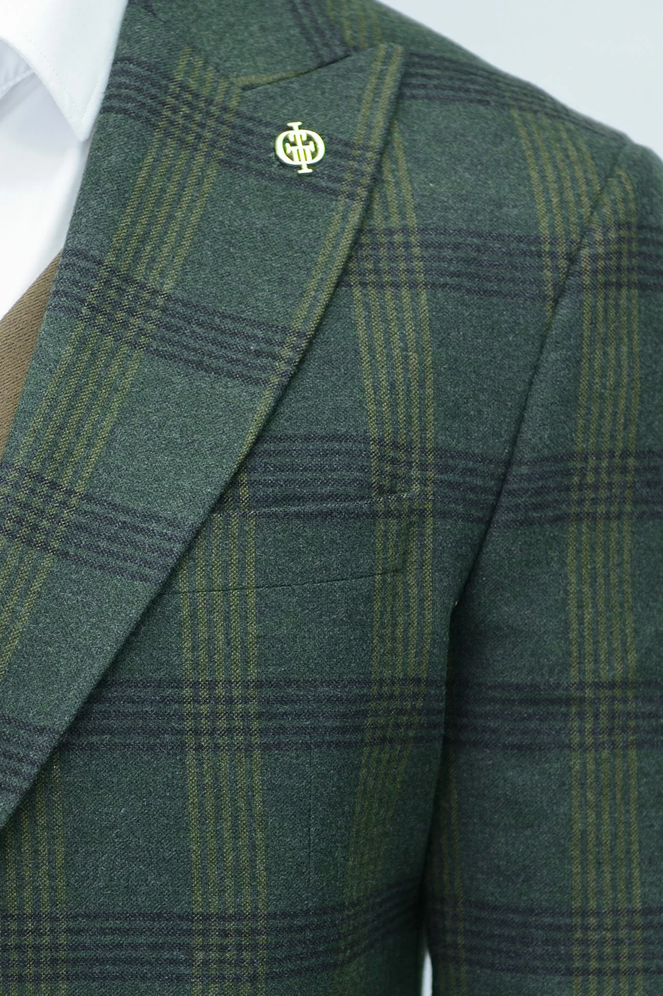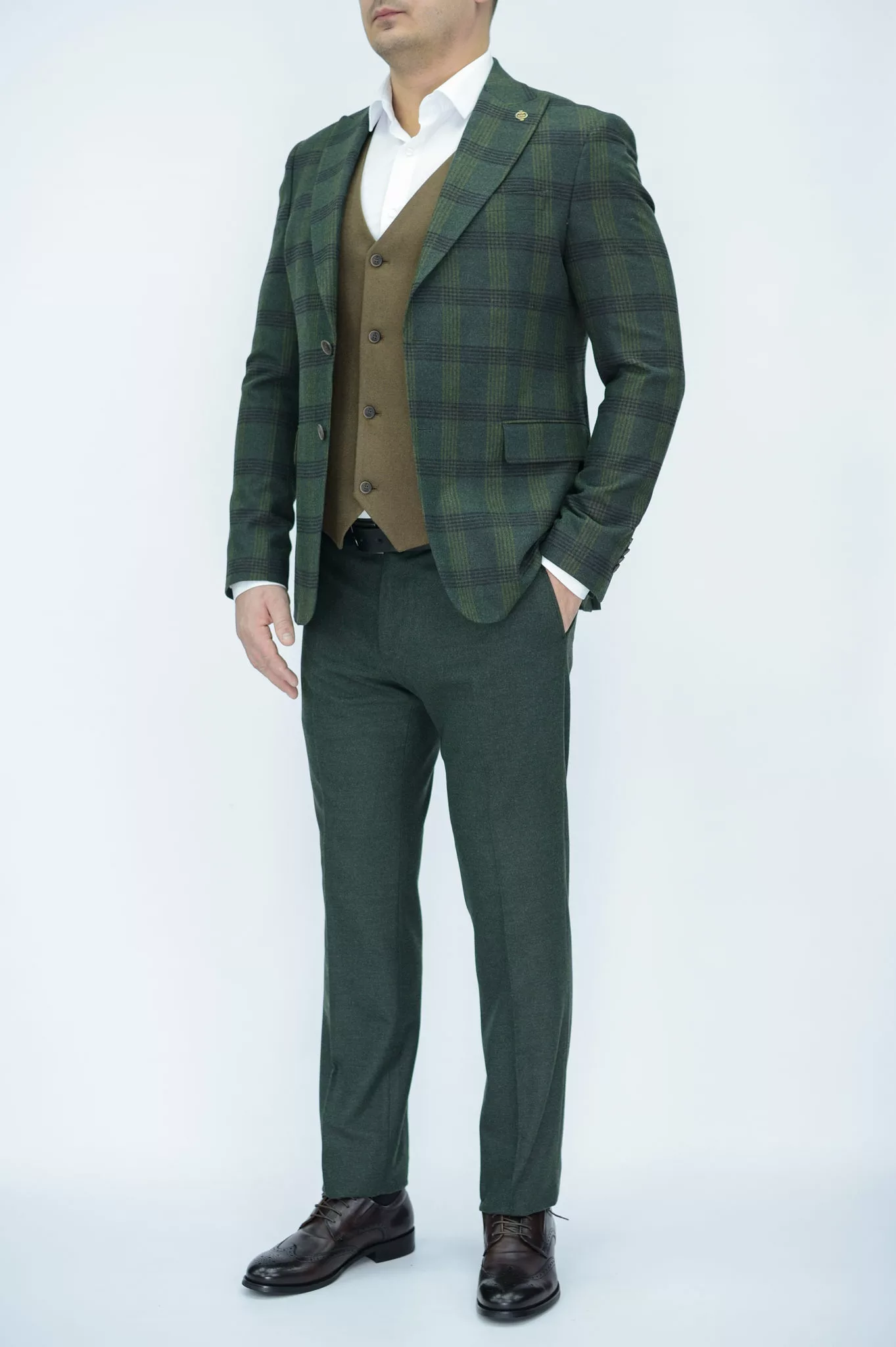Костюм-тройка с клетчатым зеленым пиджаком