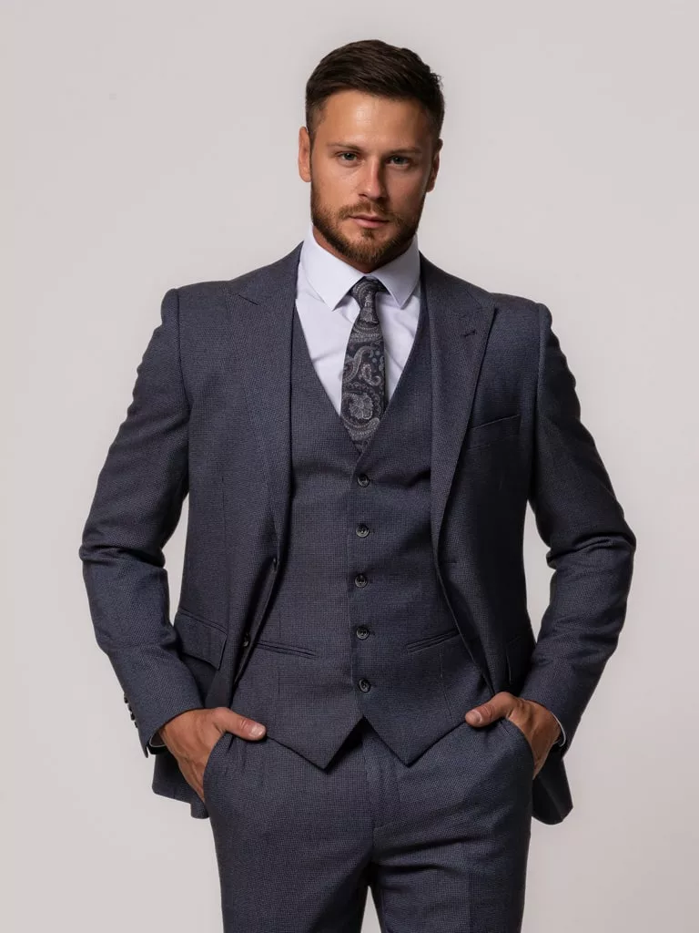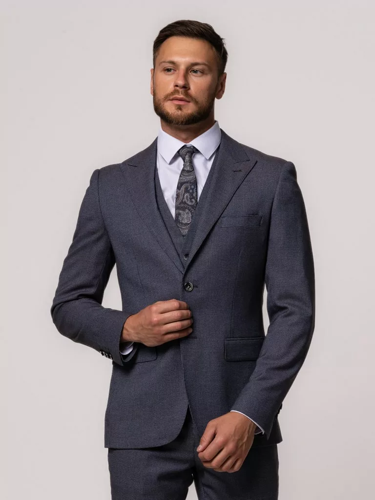 Костюм отшит в полуприталенной модели regular-fit. Пиджак имеет застежку на две пуговицы, лацкан воротника «заостренной» формы, нагрудный карман с листочкой, комплектуется платком, значек в петлице. Боковые карманы пиджака выполнены в форме накладных. Брюки слегка приужены, имеют свободную длину. По вашей просьбе мы бесплатно подгоним длину брюк под вашу ростовку. Костюм отшит из смесовой ткани высокого качества в составе 80% шерсти и 20% вискозы и самое главное 5% эластана, что позволяет долго сохранять презентабельный внешний вид и форму, ткань устойчива к заминанию.