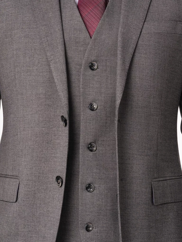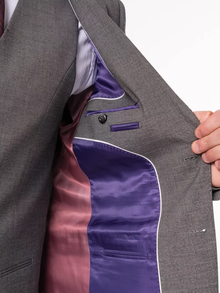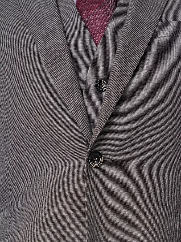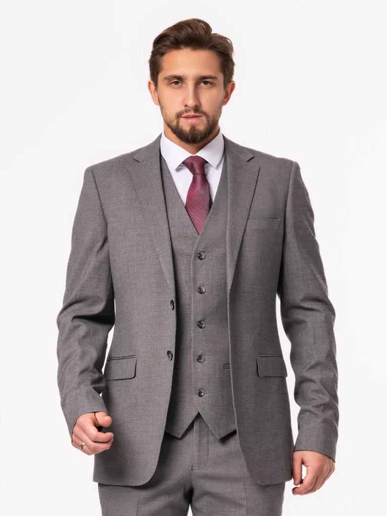 Костюм имеет замечательную посадку, отлично садится практически на любой тип фигуры. Данная модель отшита в светло-сером цвете, отлично подойдет для офиса и повседневной носки. Жилет костюма по спине также тканевый, что позволяет использовать его отдельно только с брюками.