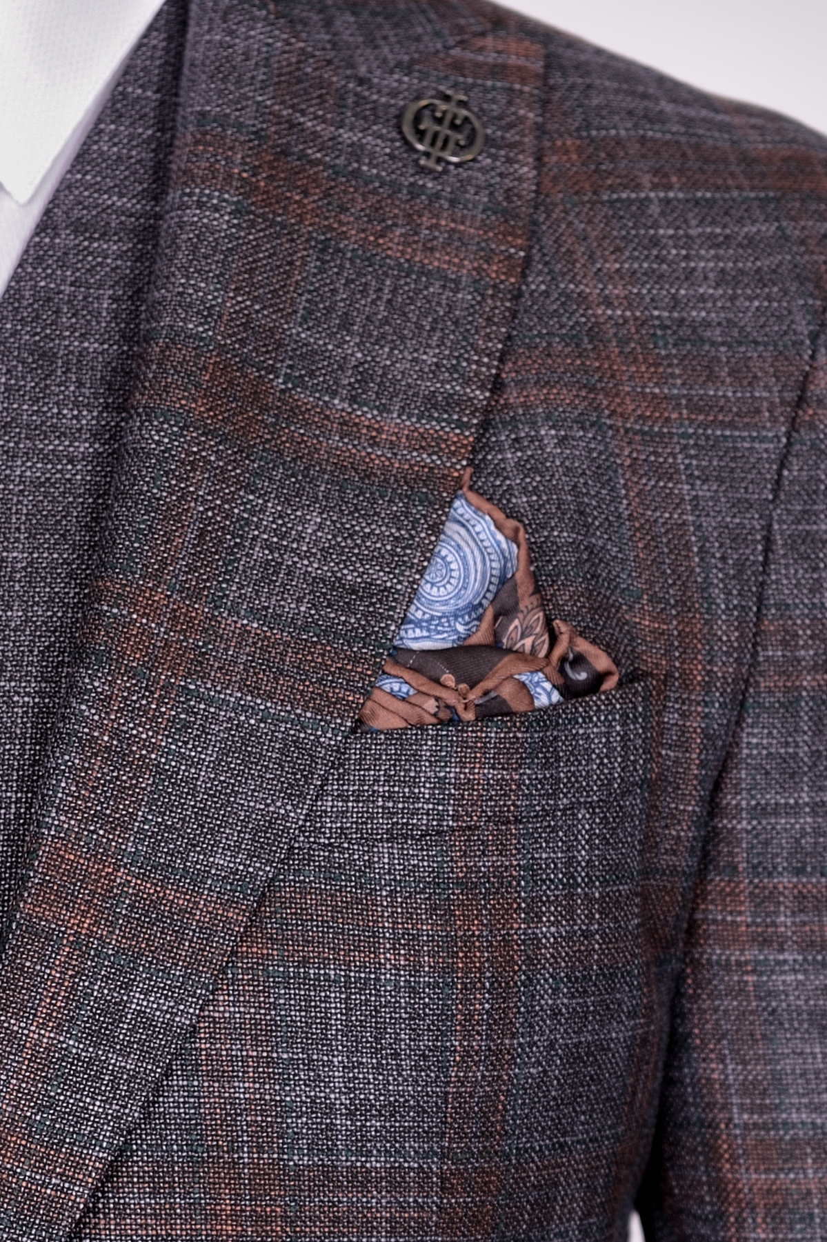 Костюм-тройка коричневого цвета в клетку