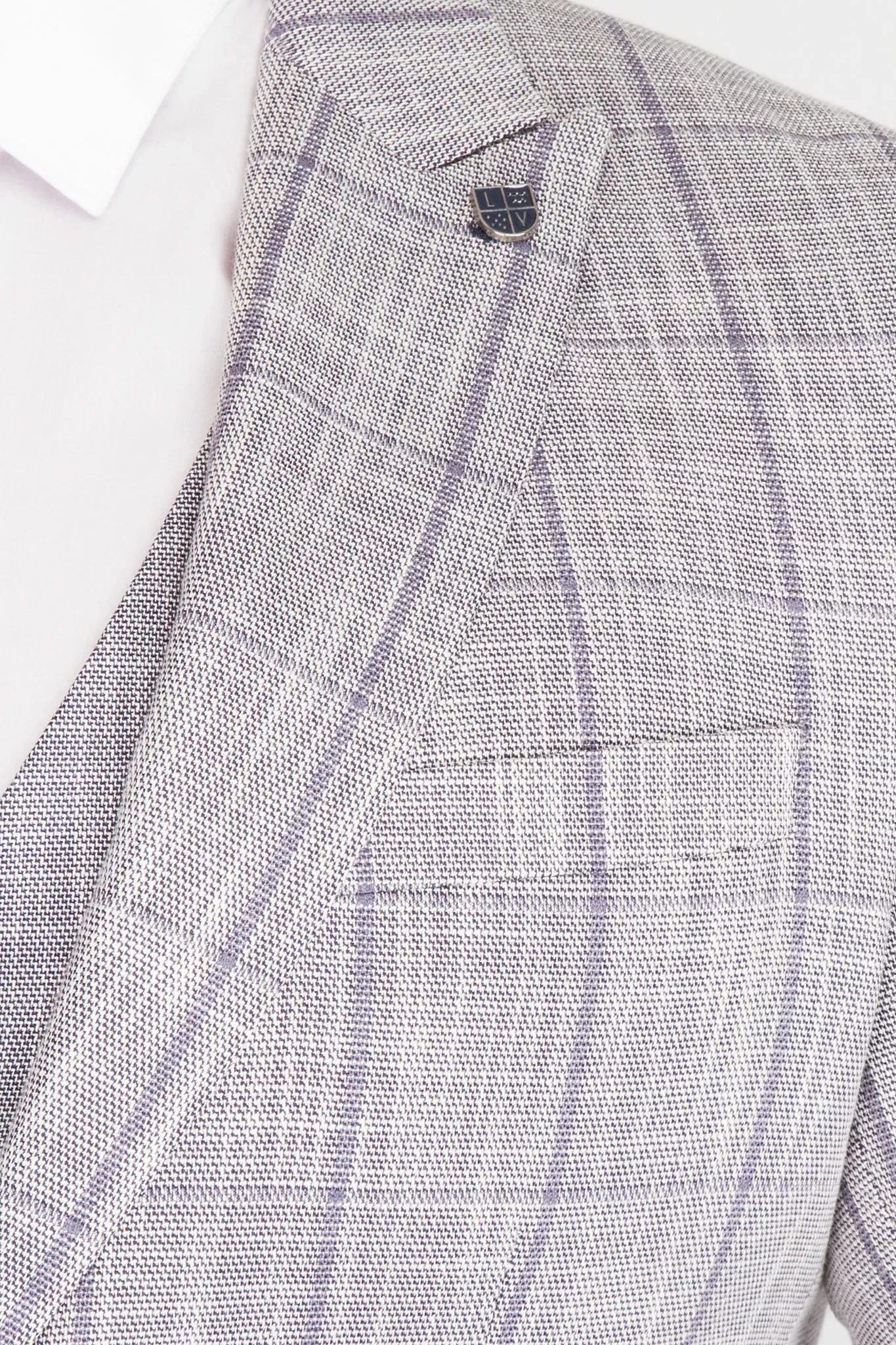 Костюм-тройка серого цвета в бледно-сиреневую клетку