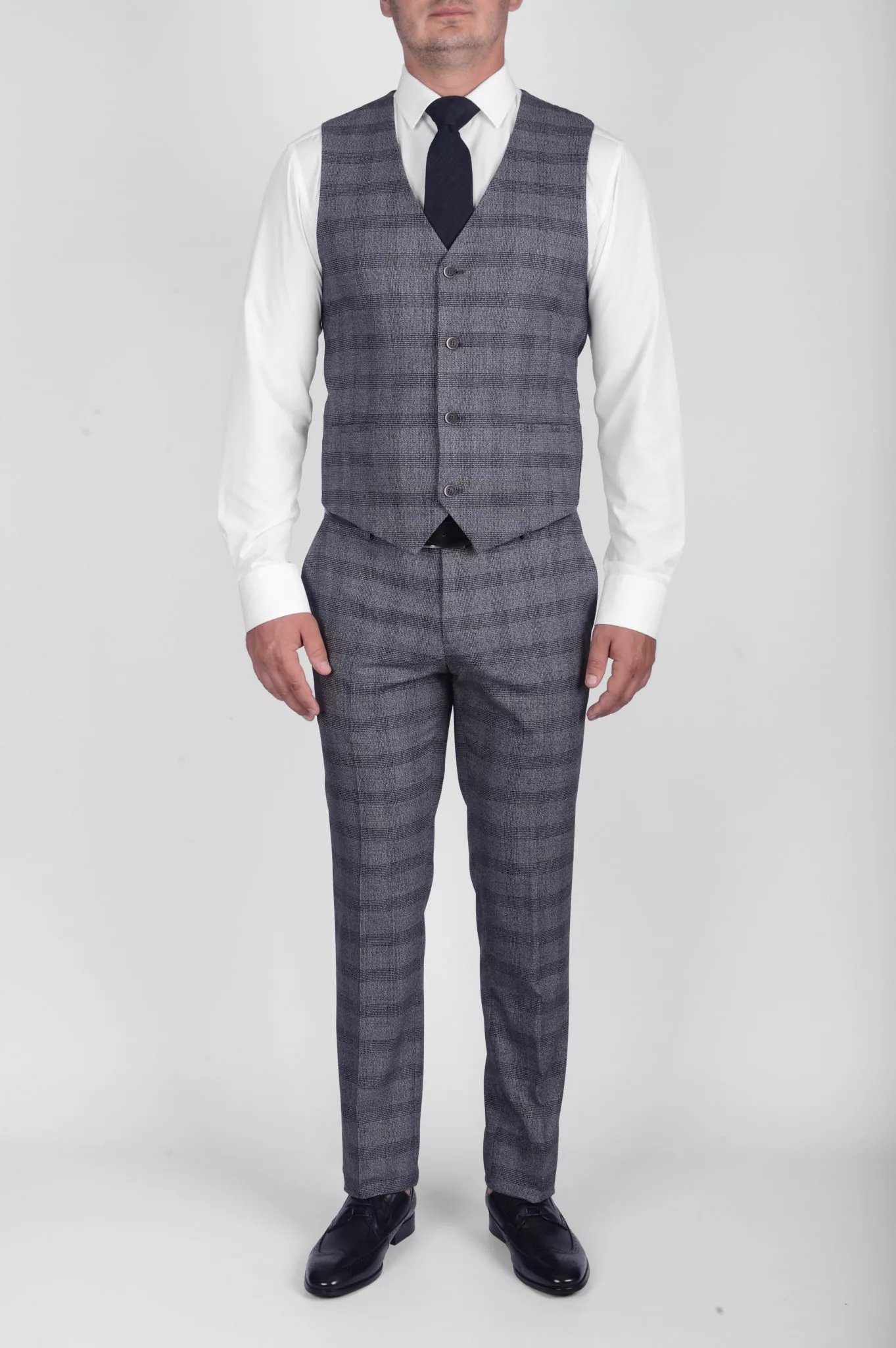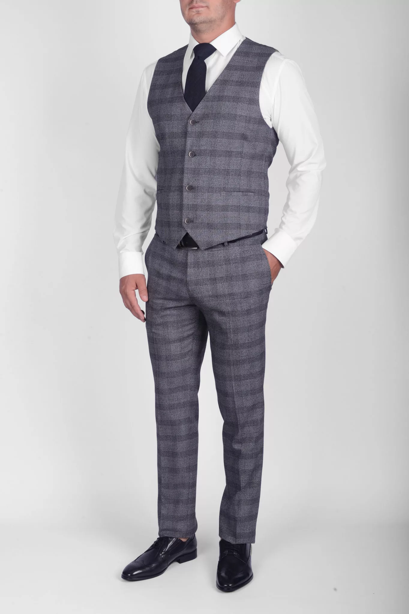 Костюм-тройка серого цвета в клетку