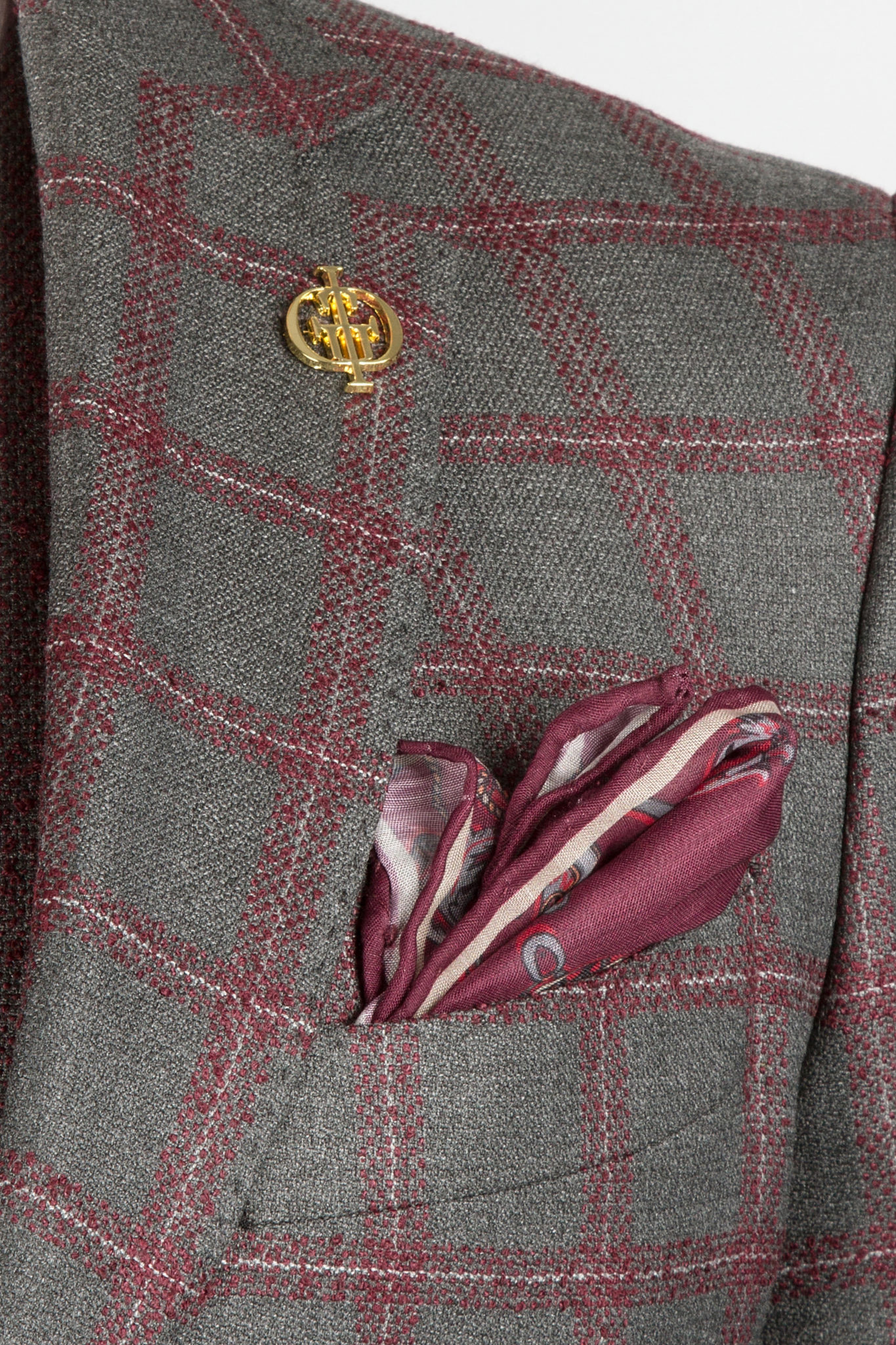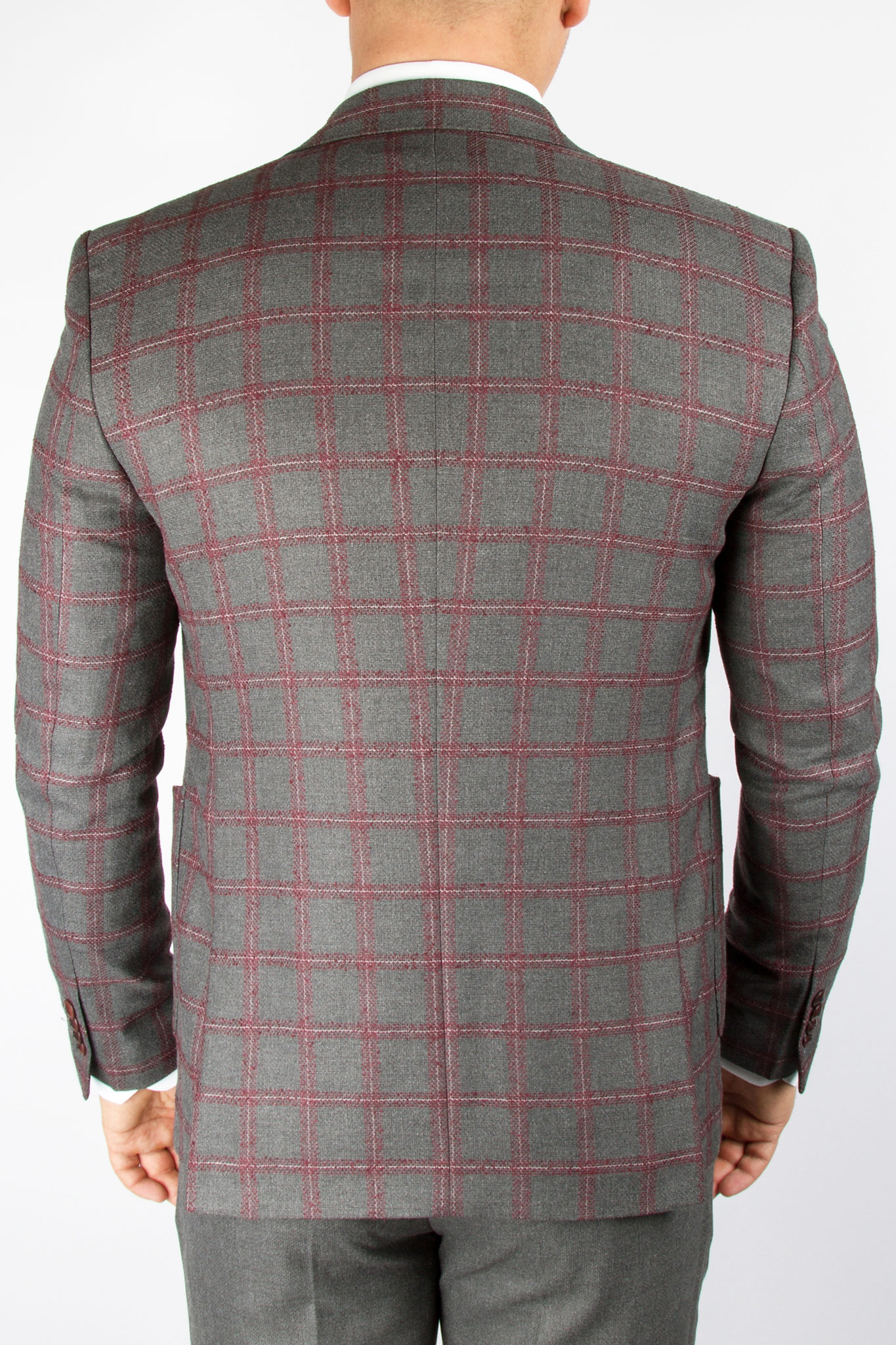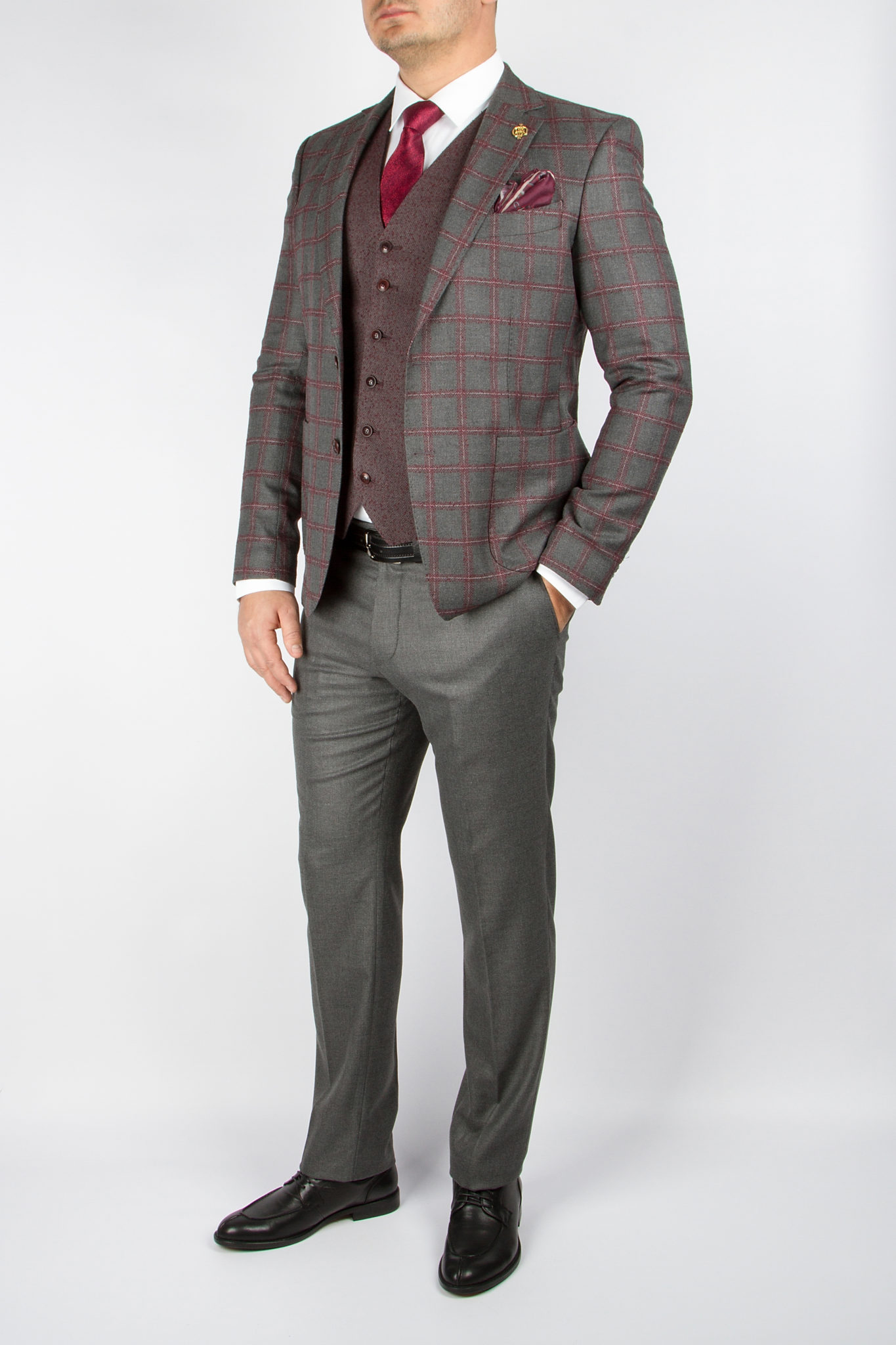 Костюм-тройка серого цвета в розовую клетку