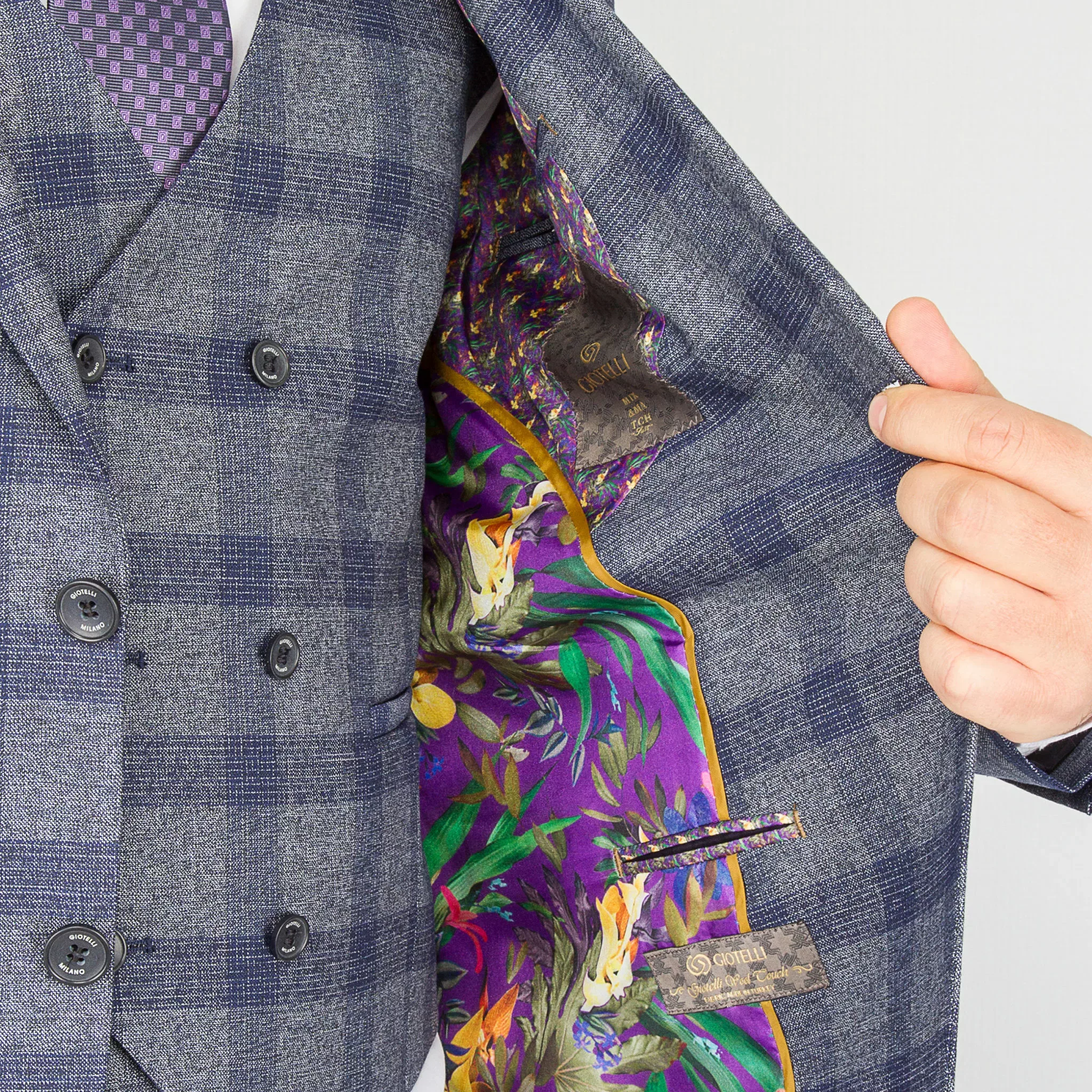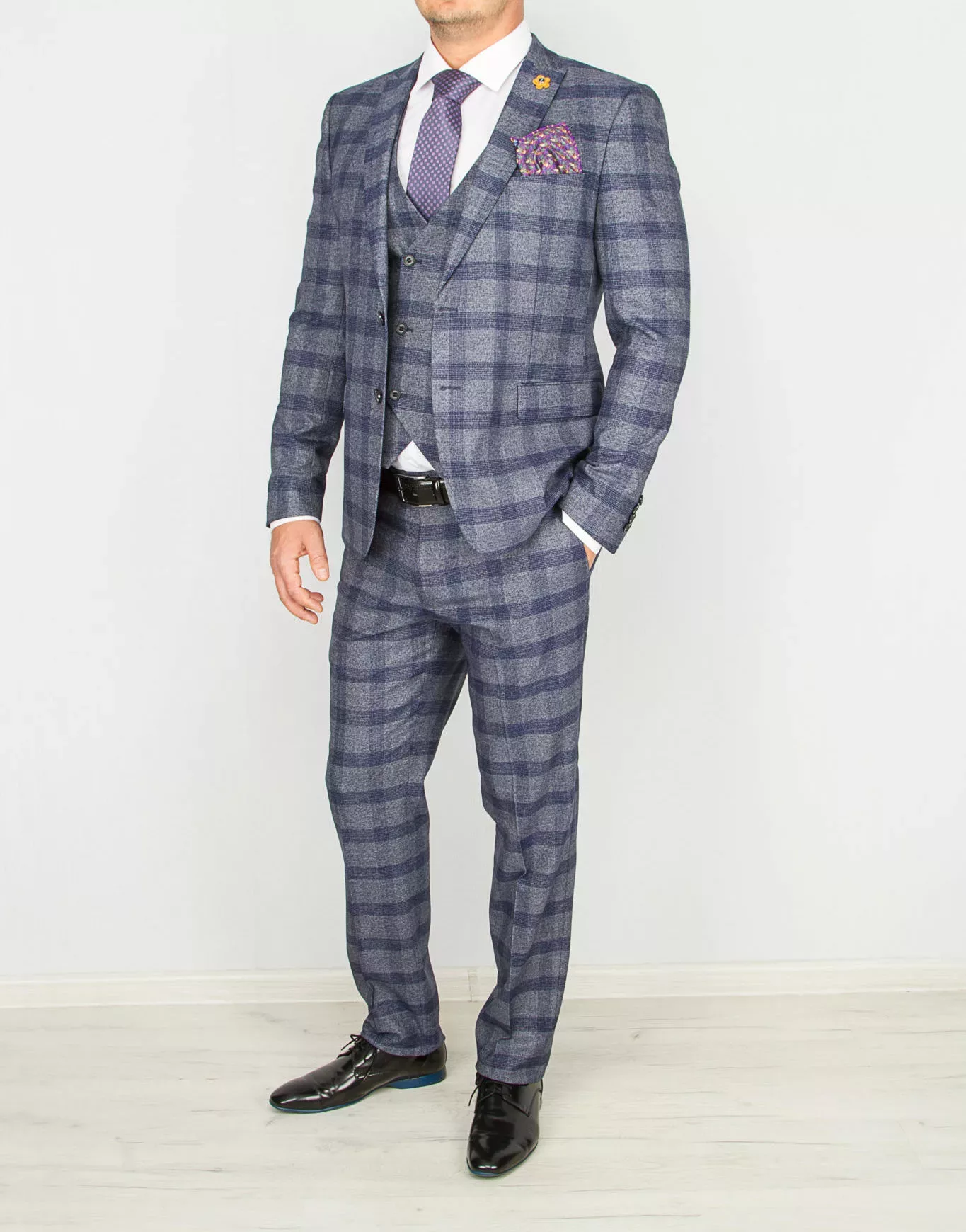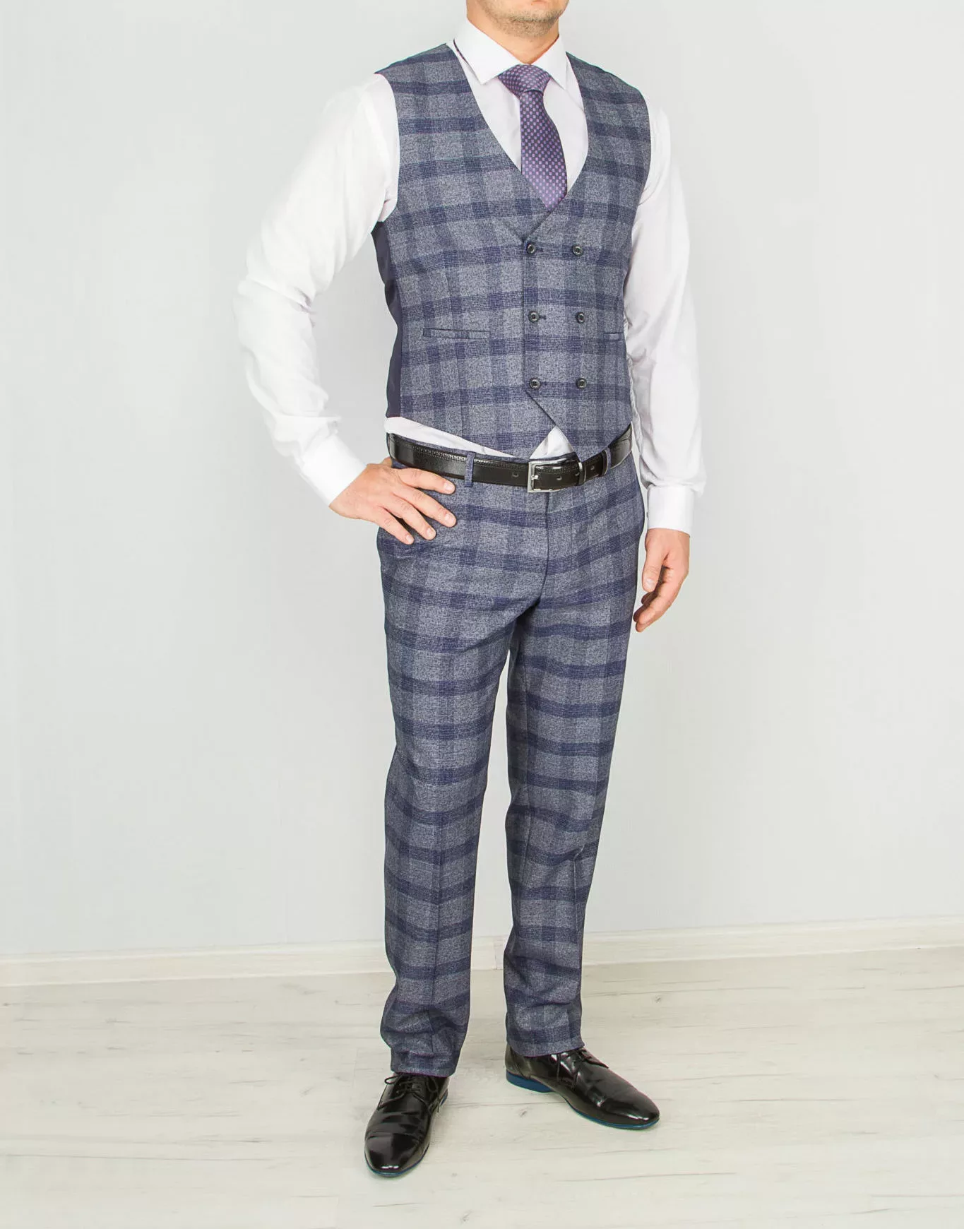 Костюм отшит в приталенной модели slimfit. Пиджак имеет застежку на две пуговицы, узкий лацкан воротника, нагрудный карман с листочкой, значек в петлице. Данная модель отлично ложится на стройную, подтянутую фигуру. Брюки имеют свободную длину. По вашей просьбе мы бесплатно подгоним длину брюк под вашу ростовку. Костюм отшит из смесовой ткани высокого качества в составе 80% шерсти и 20% вискозы, что позволяет долго сохранять презентабельный внешний вид и форму, ткань устойчива к заминанию. Клетка в костюме подогнана строго встык.